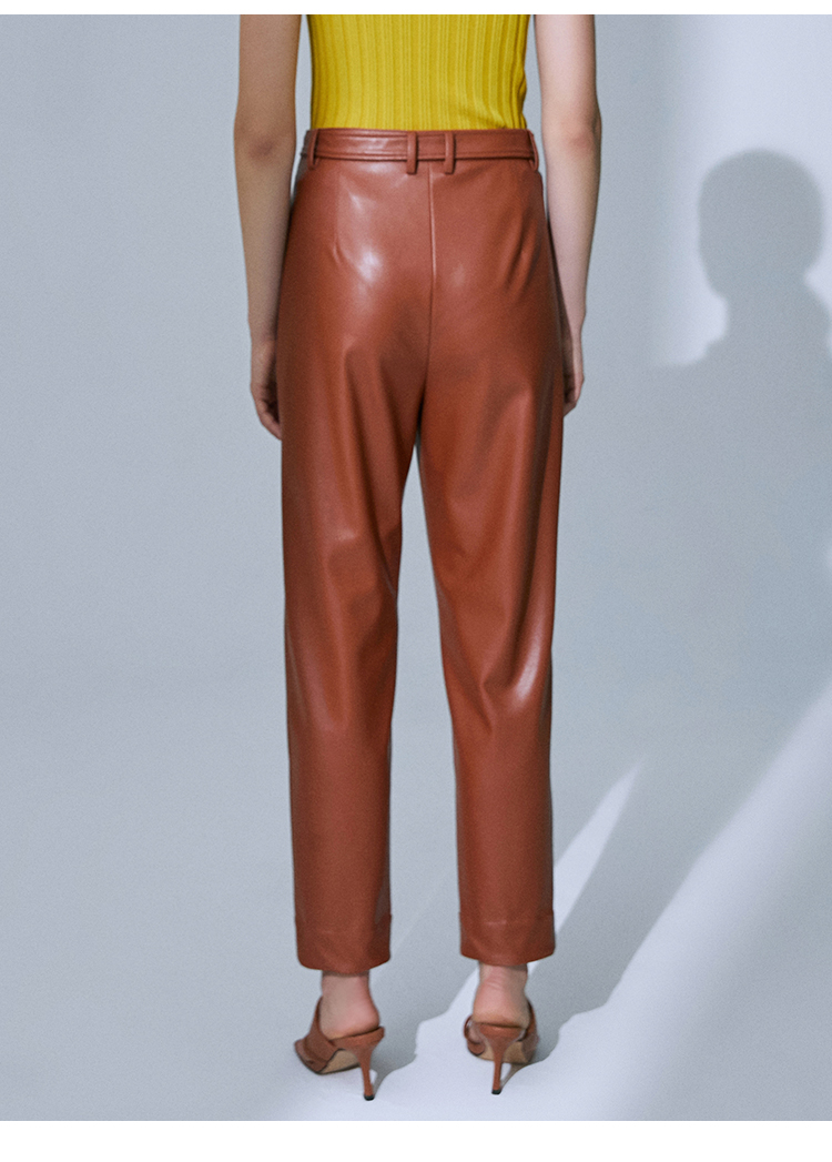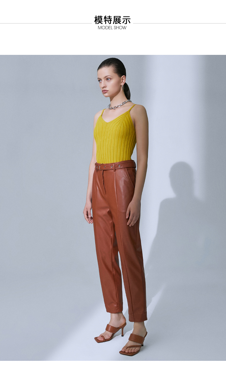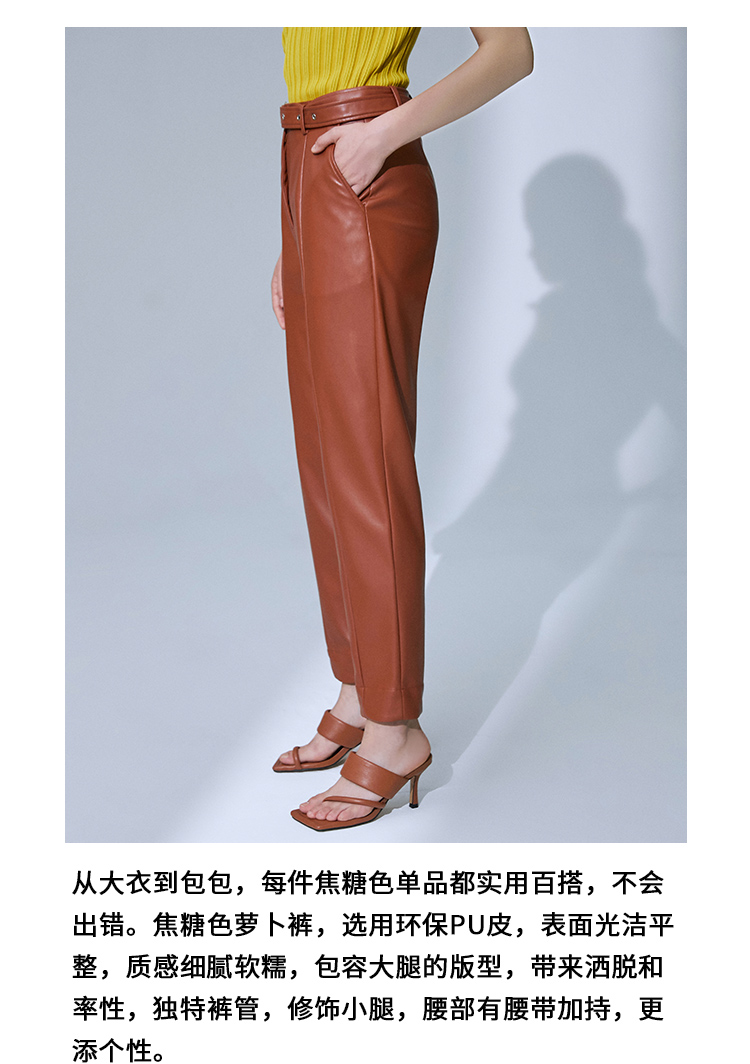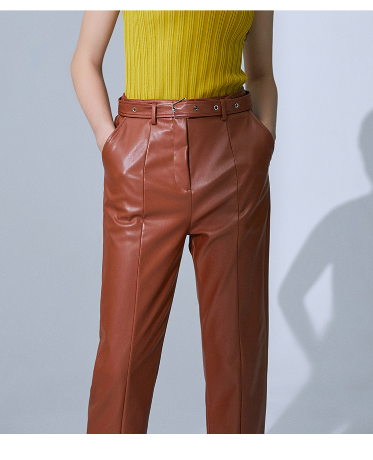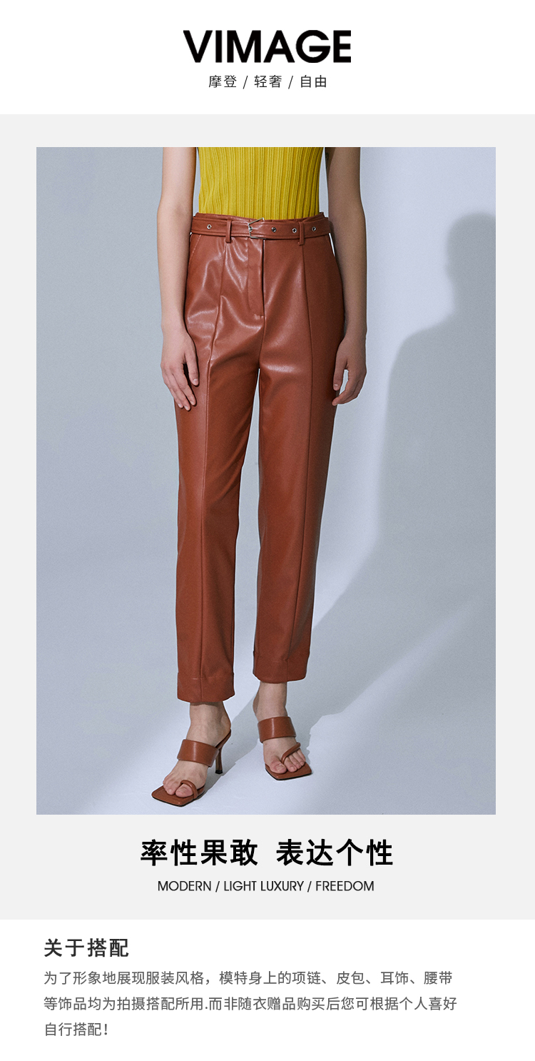 VIMAGE纬漫纪高腰显瘦九分皮裤休闲裤裤子V1505101