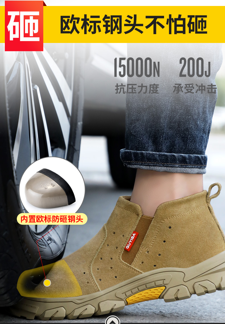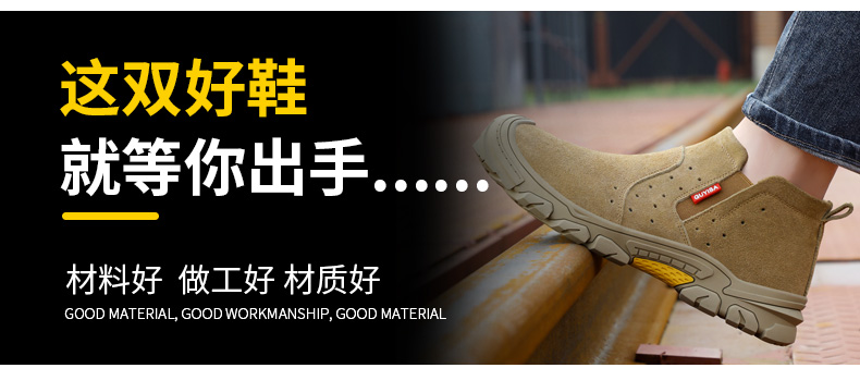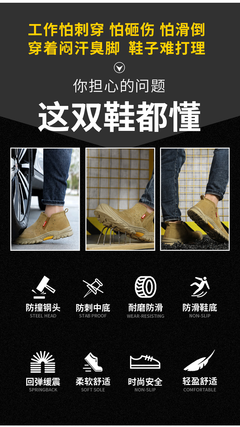 新款反绒皮防烫劳保鞋钢包头防砸防刺耐磨橡胶底舒适防臭安全工作鞋
