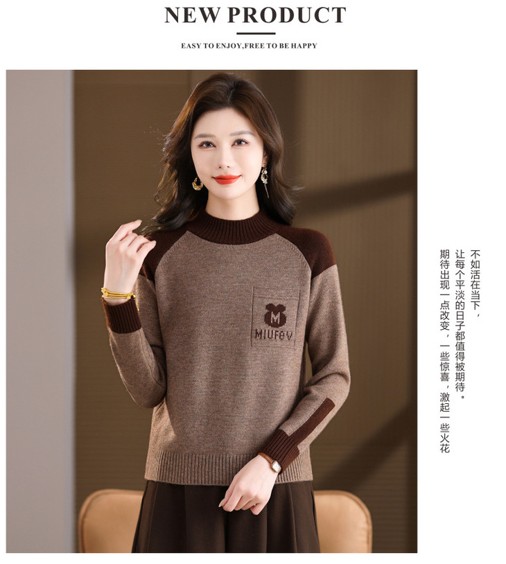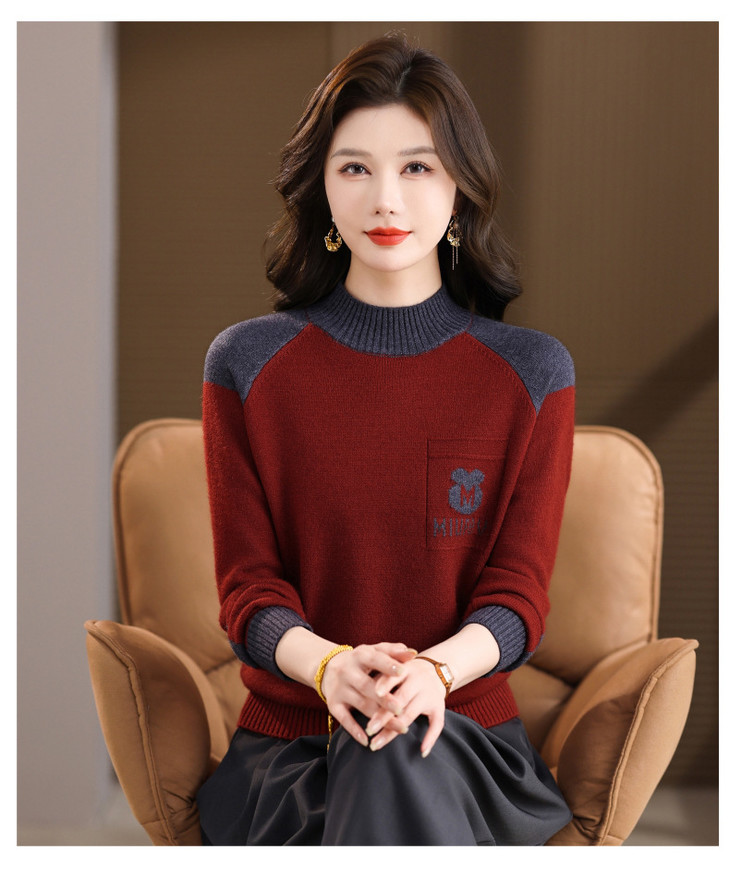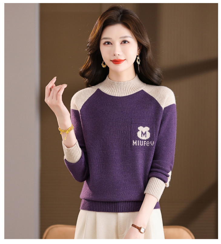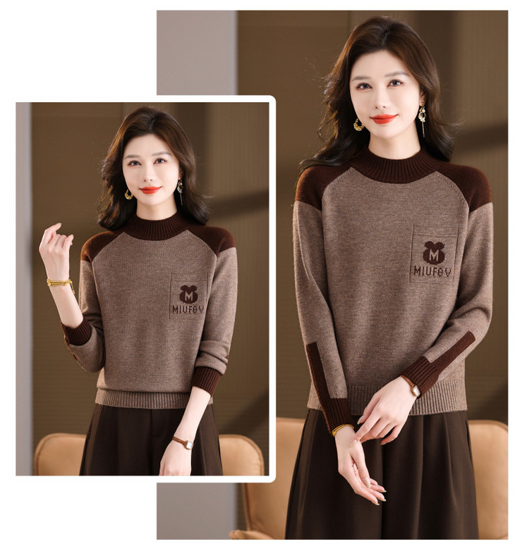 拼色半高领毛衣卡通字母口袋,针织衫显瘦长袖内搭打底衫CC-103-26751