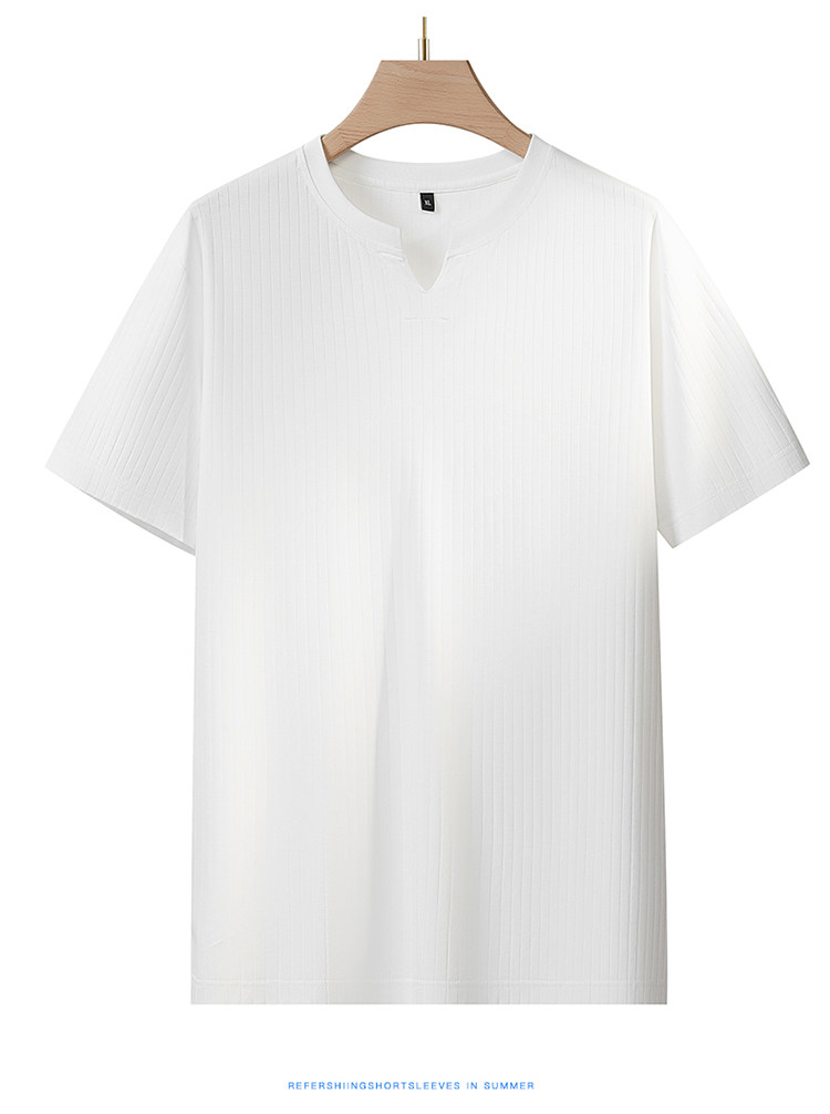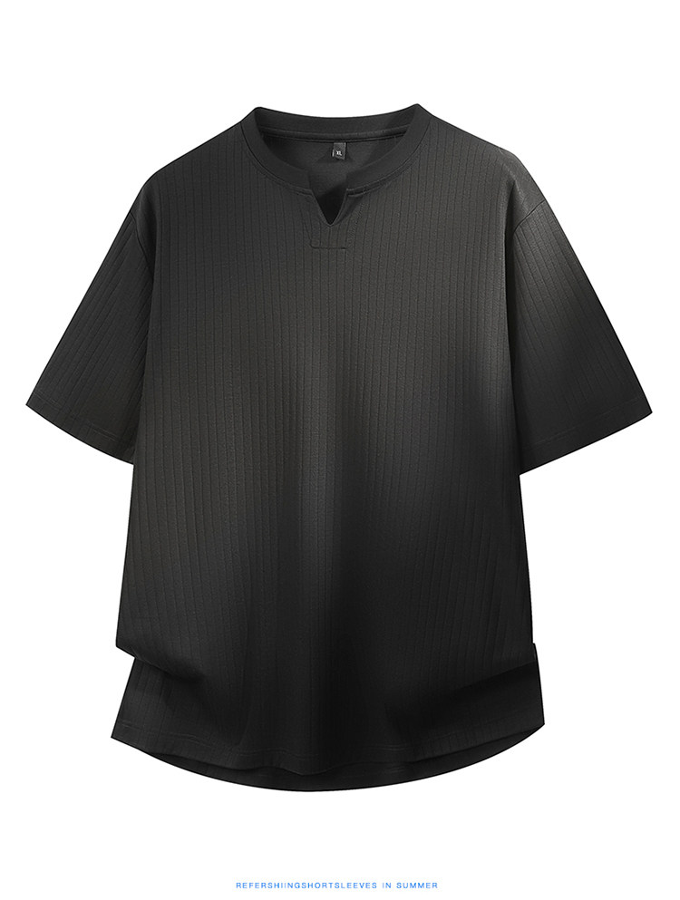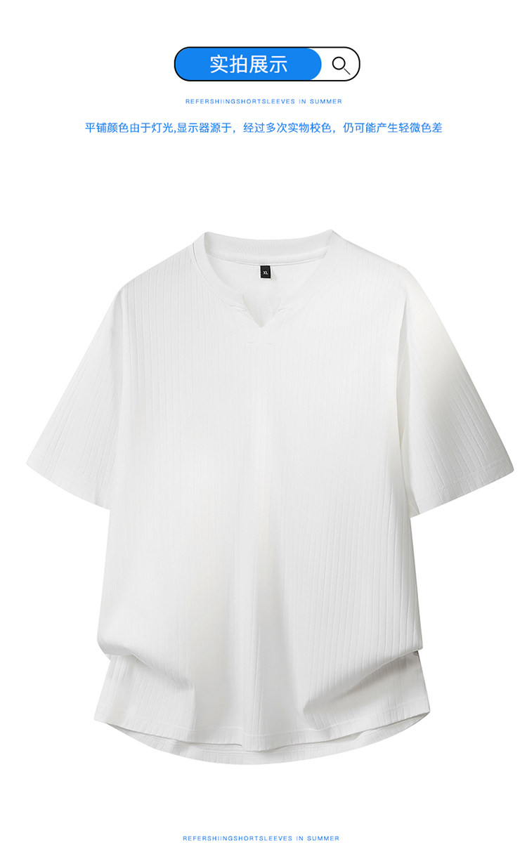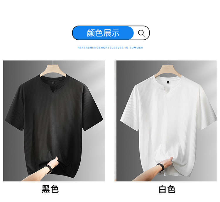 【DPF】大依优型大码男装夏季冰丝v领短袖T恤纯色潮流百搭休闲宽松上衣