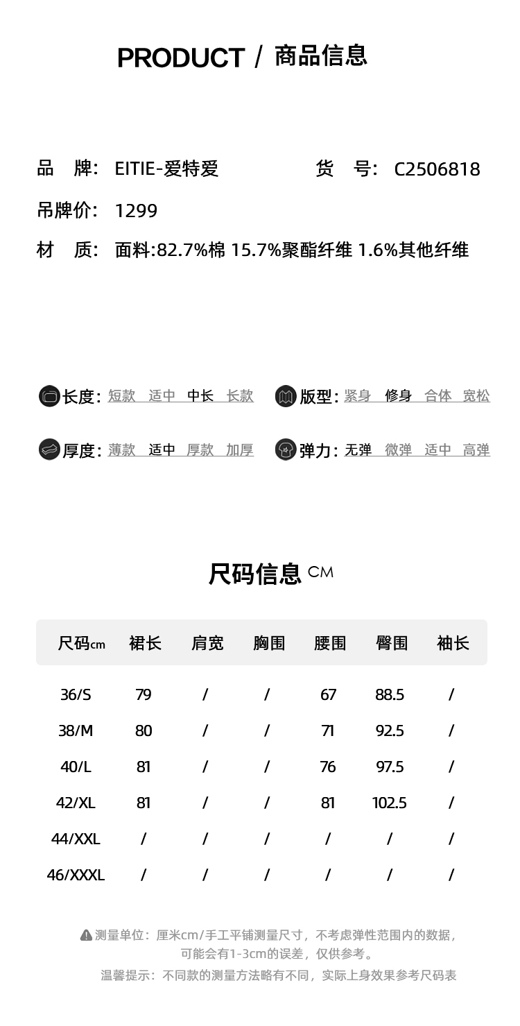 同款下架-EITIE爱特爱高腰背面开叉设计显瘦半身裙C2506818