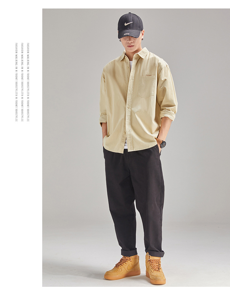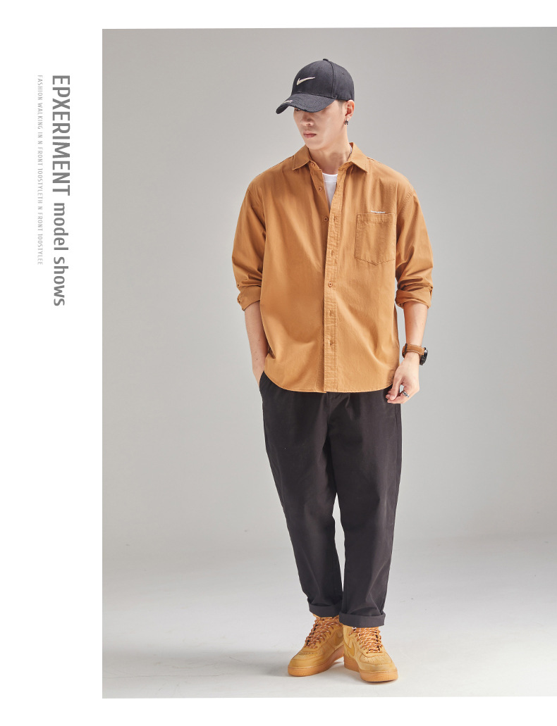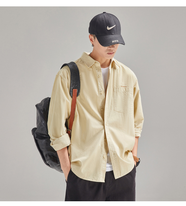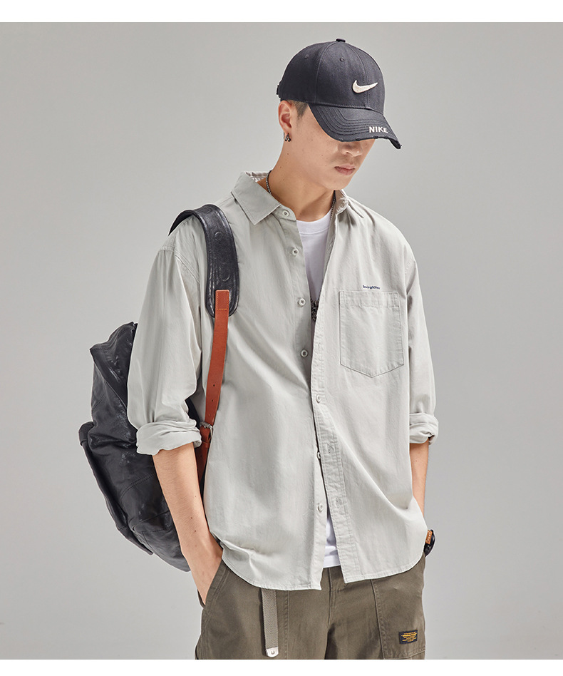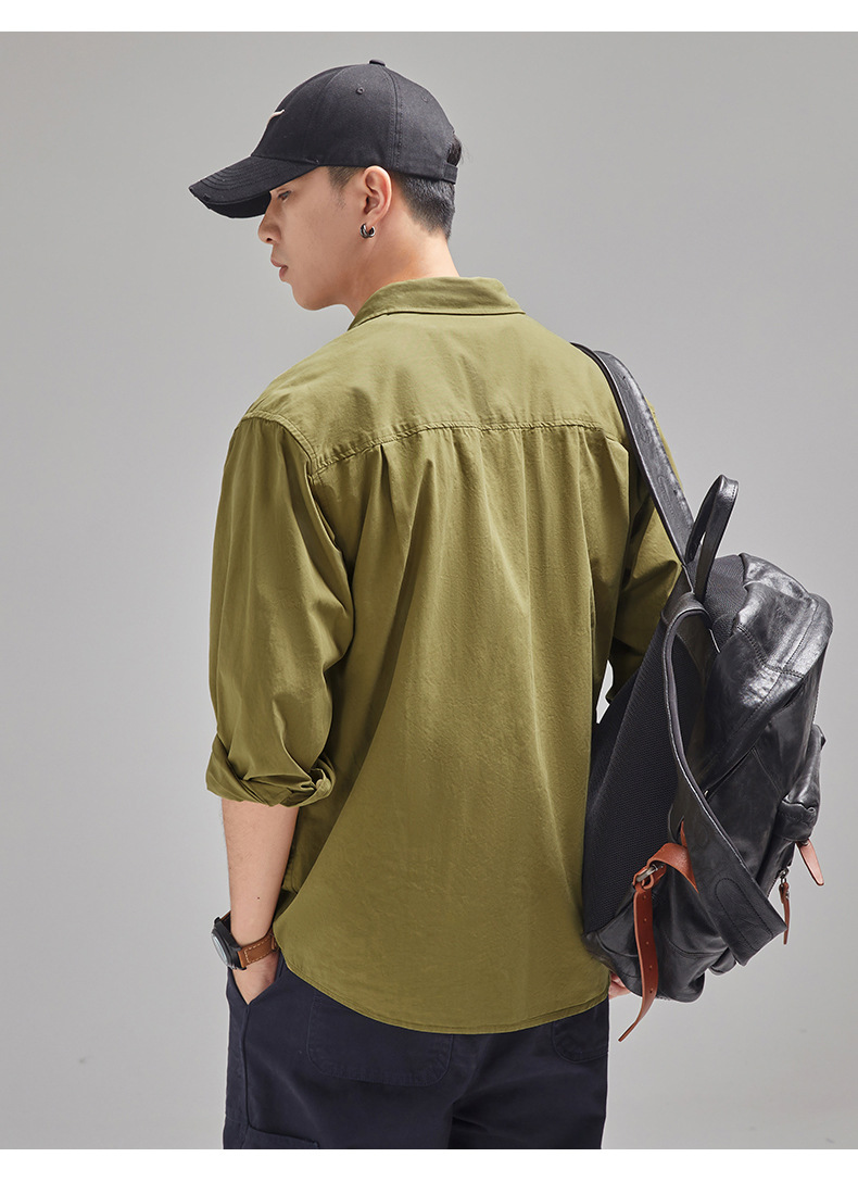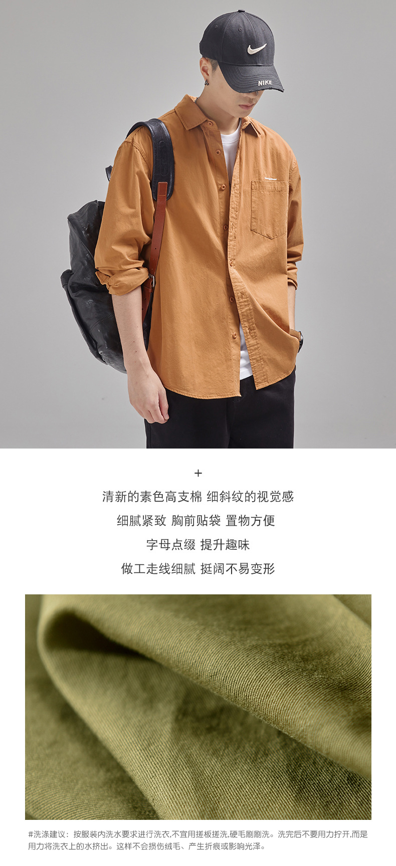 秋季新款衬衫男长袖宽松休闲纯棉立领日系衬衣男士潮牌上衣服 AY-DCZ730【Z730】