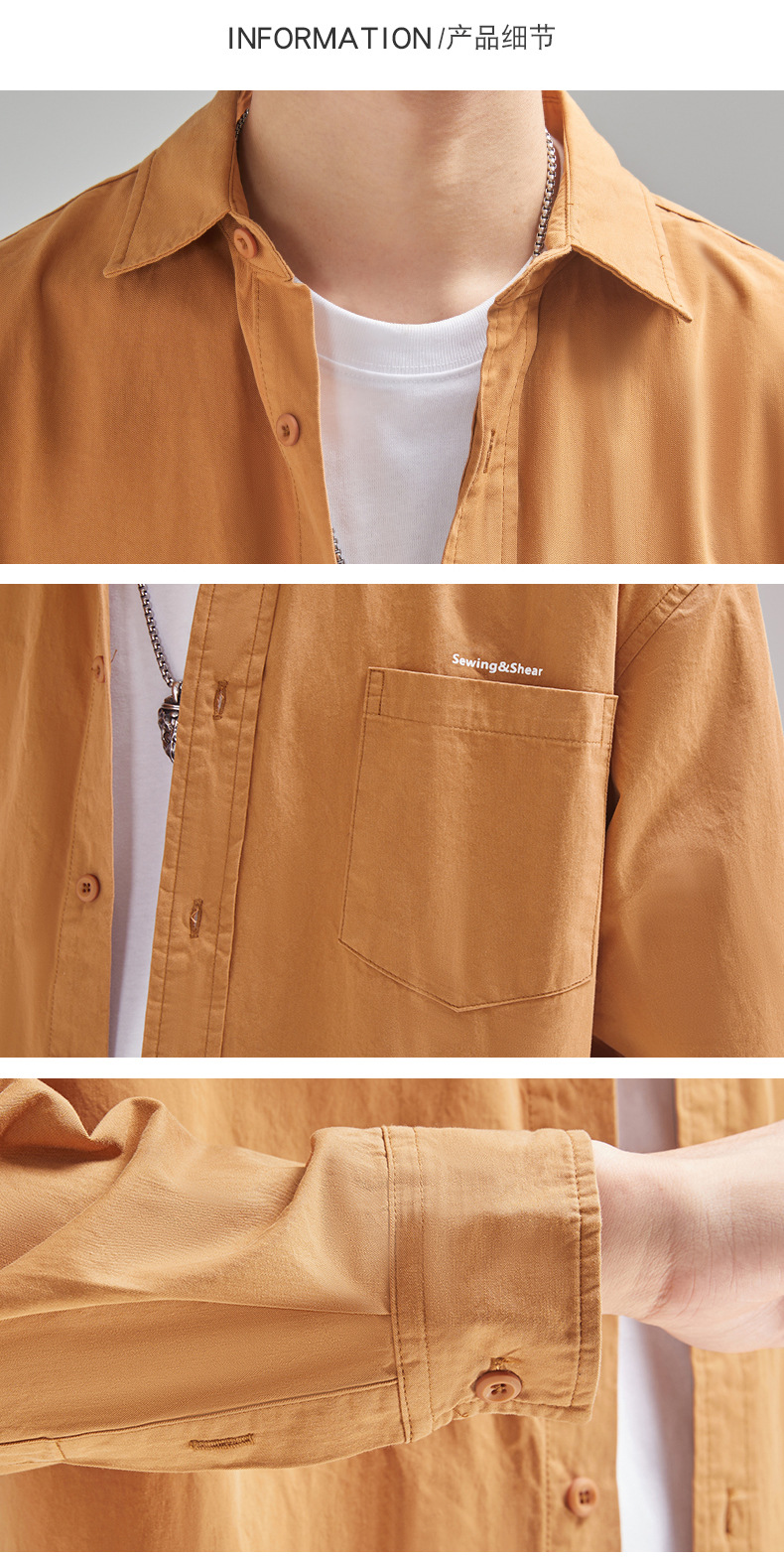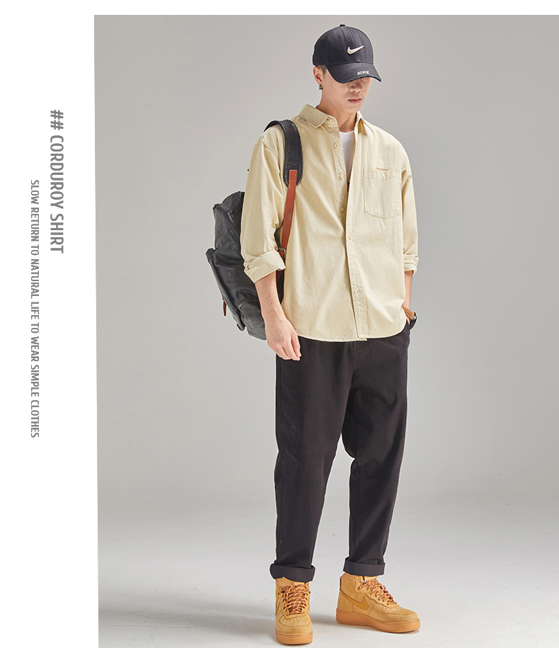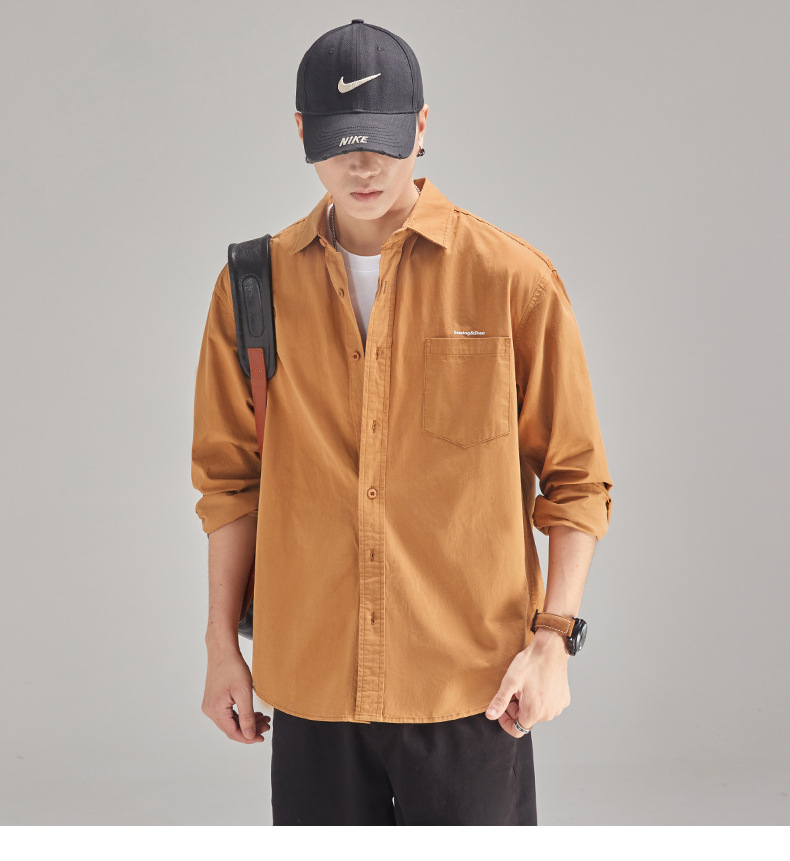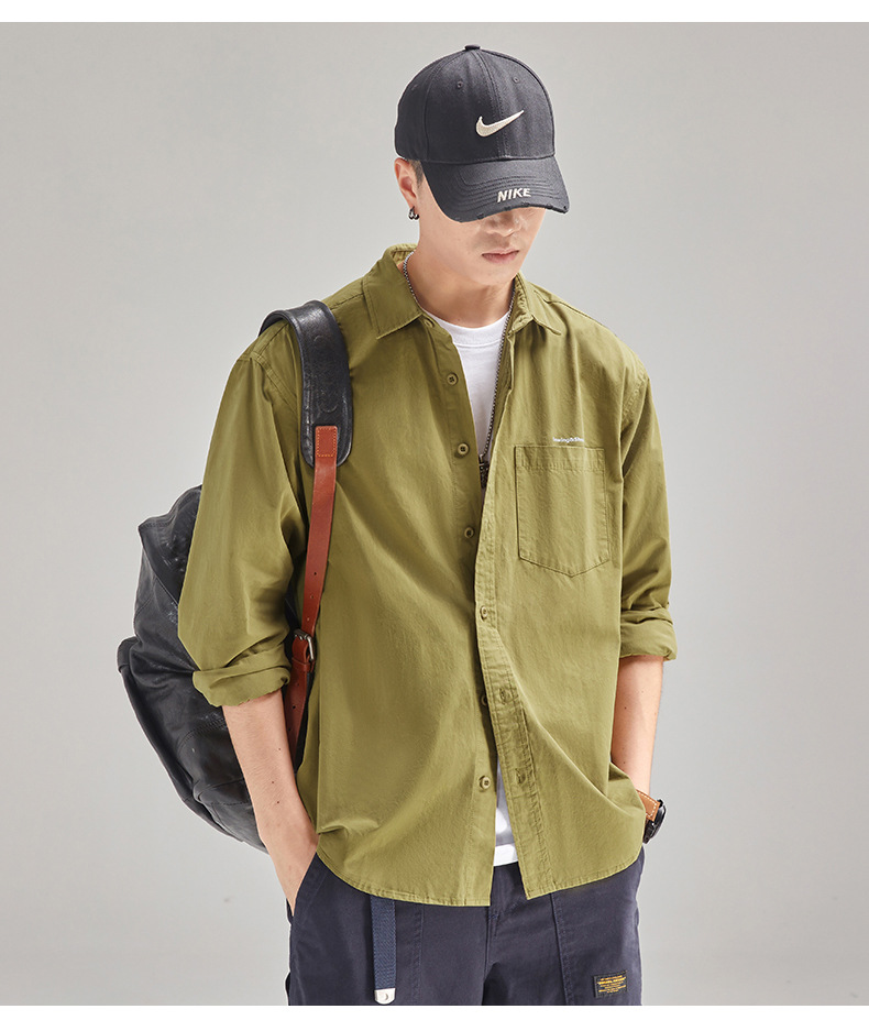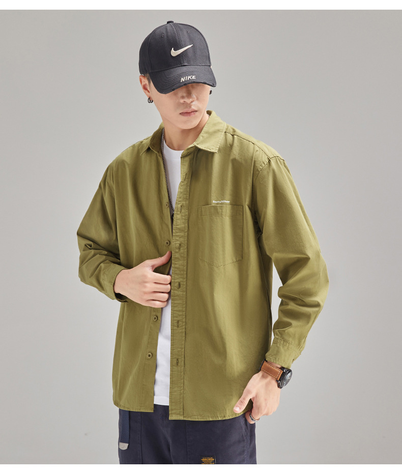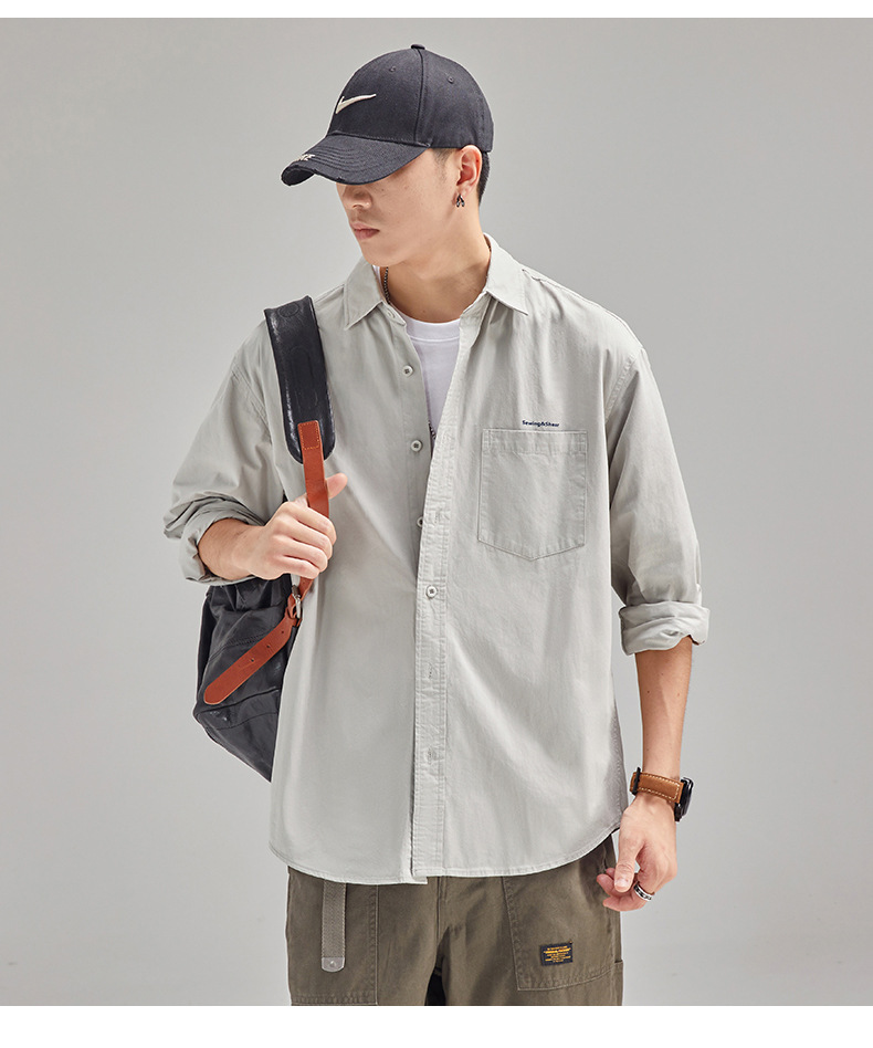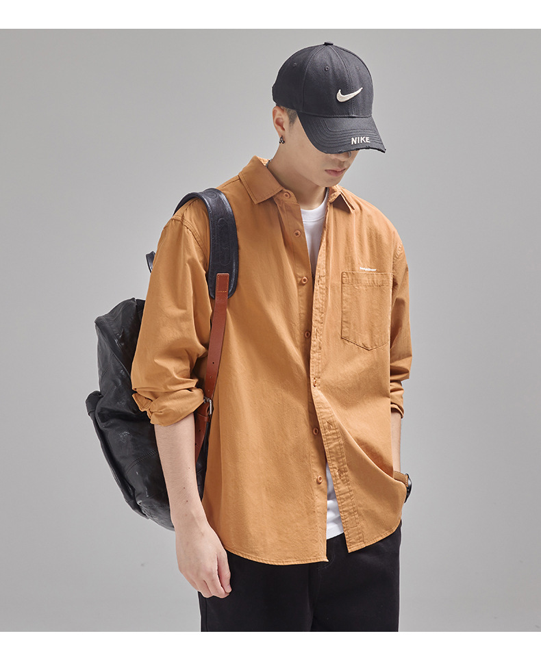秋季新款衬衫男长袖宽松休闲纯棉立领日系衬衣男士潮牌上衣服 AY-DCZ730【Z730】