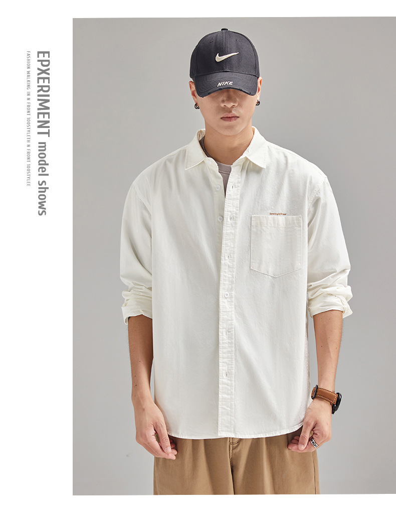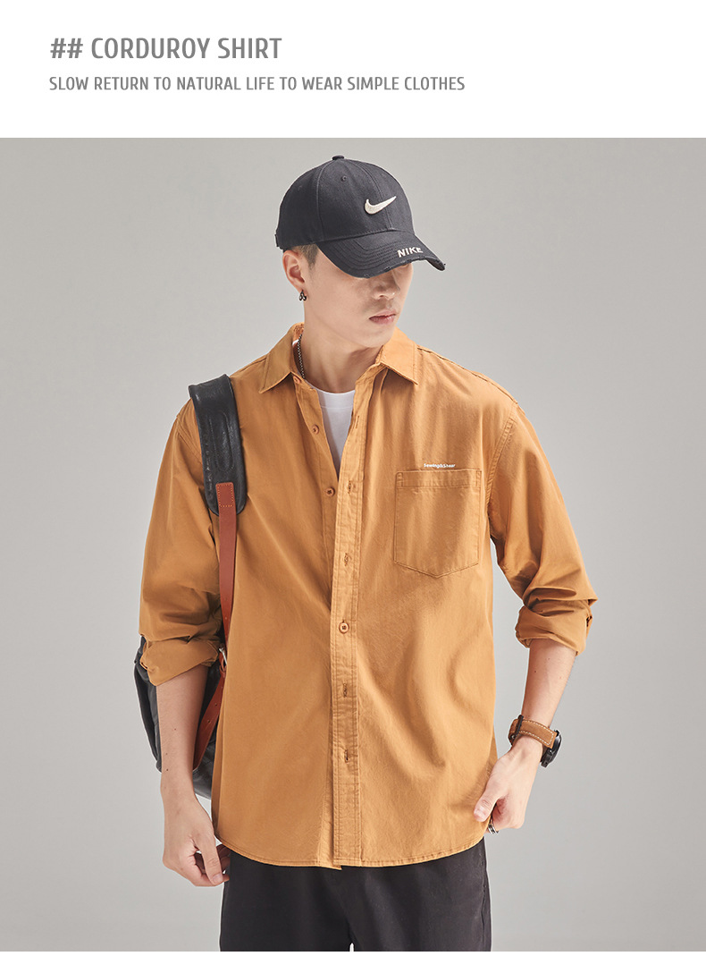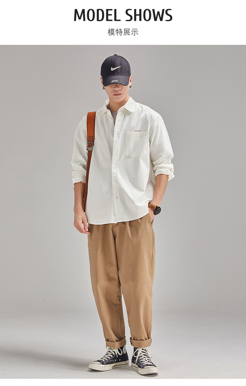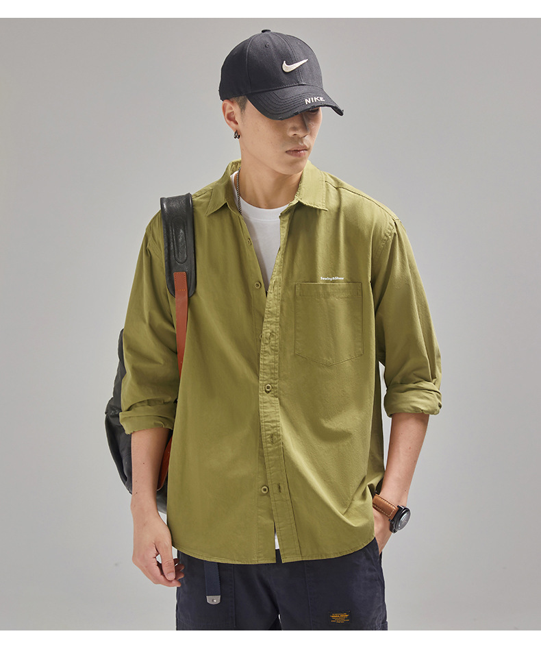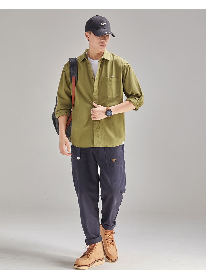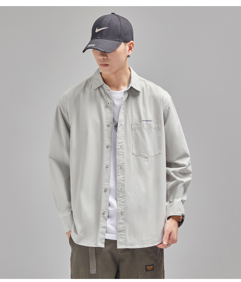 秋季新款衬衫男长袖宽松休闲纯棉立领日系衬衣男士潮牌上衣服 AY-DCZ730【Z730】