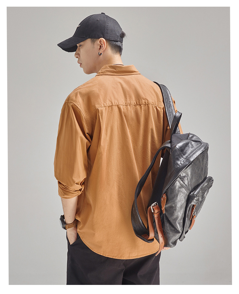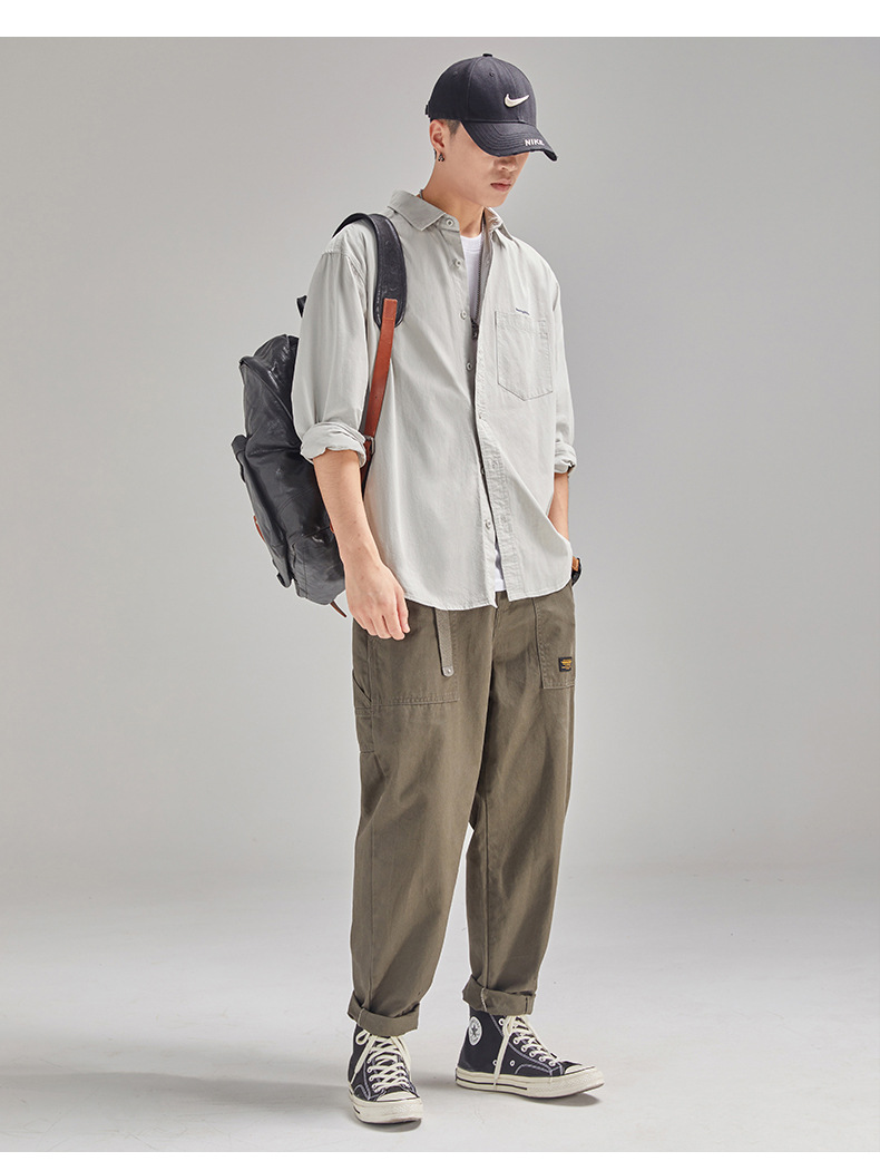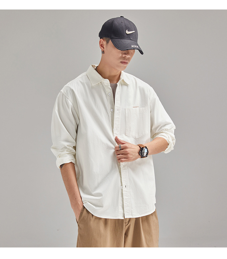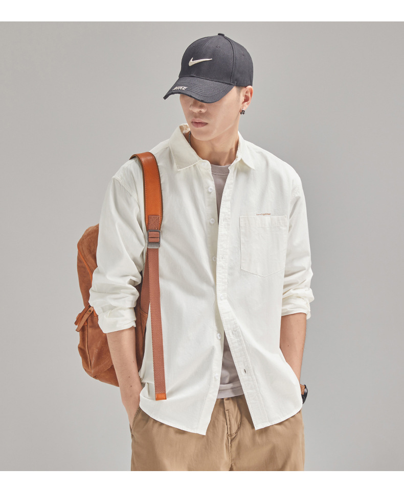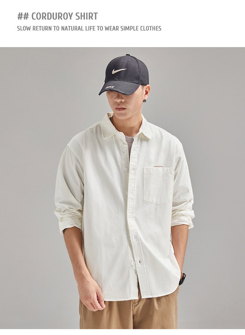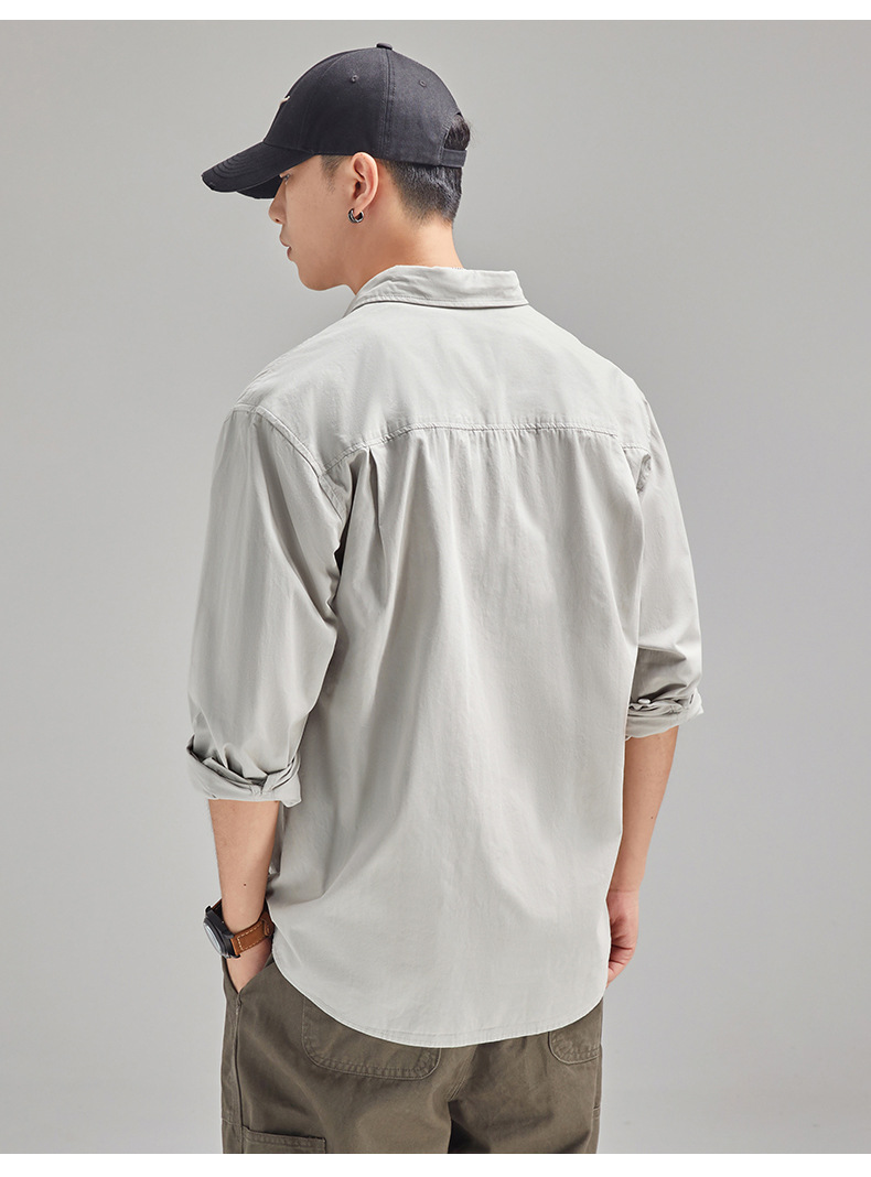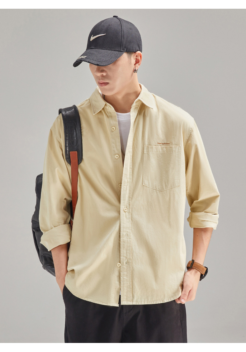 秋季新款衬衫男长袖宽松休闲纯棉立领日系衬衣男士潮牌上衣服 AY-DCZ730【Z730】