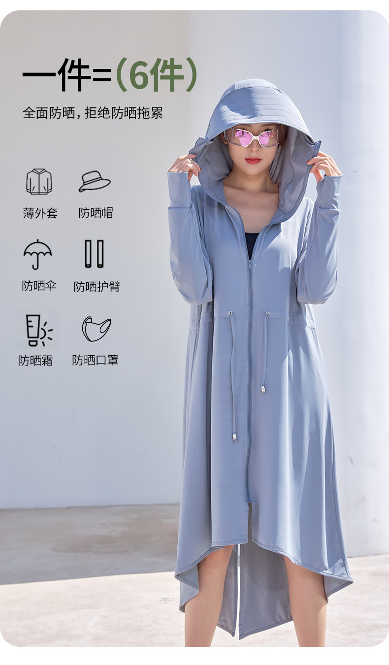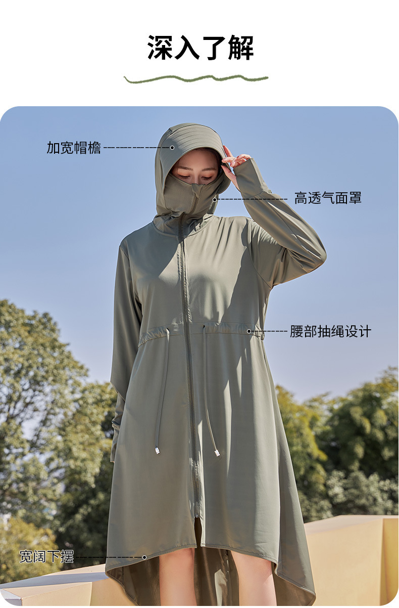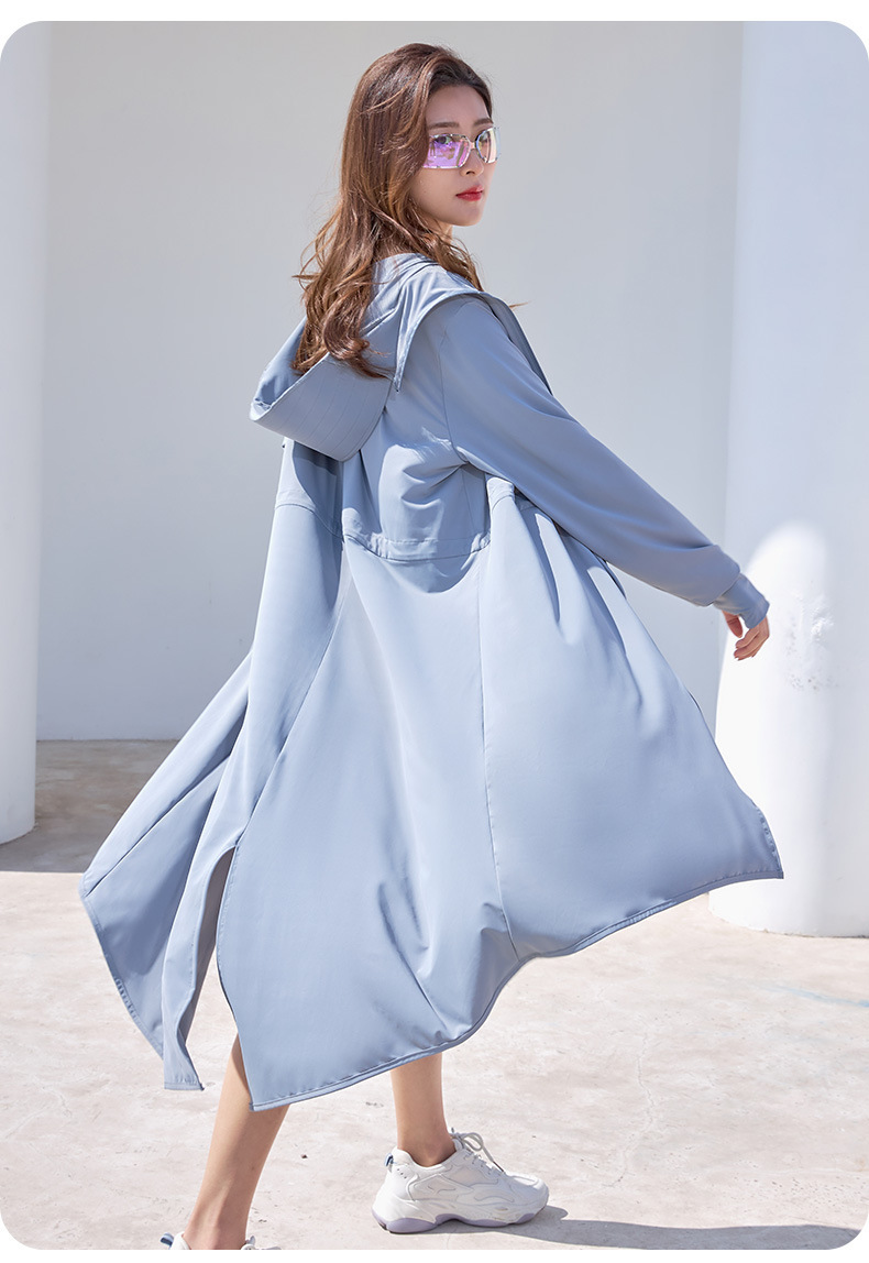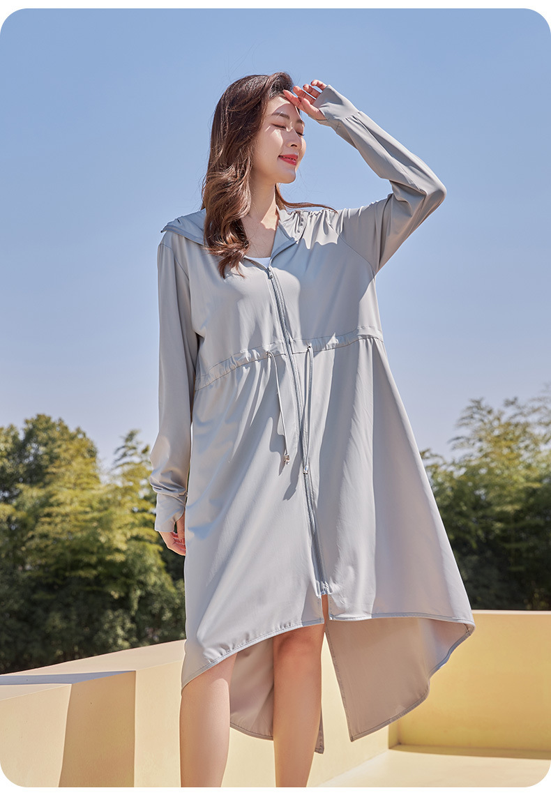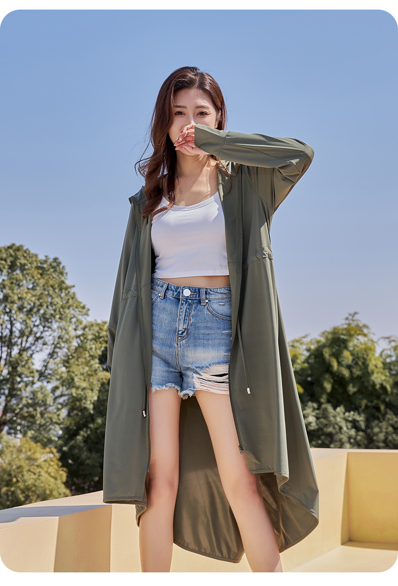 【长款凉感防晒服,全身透气~】夏季长款连帽防晒衣女 长袖遮阳宽松收腰显瘦 舒适出行休闲外套防晒-QQ