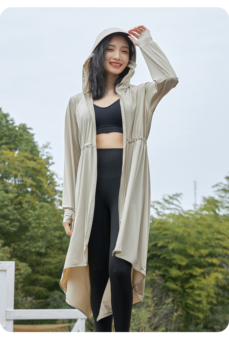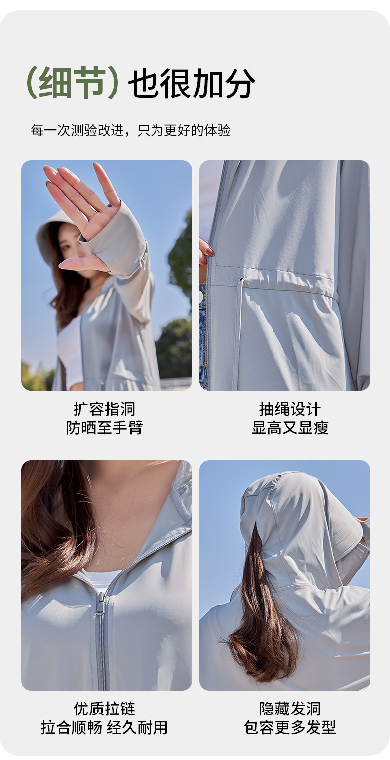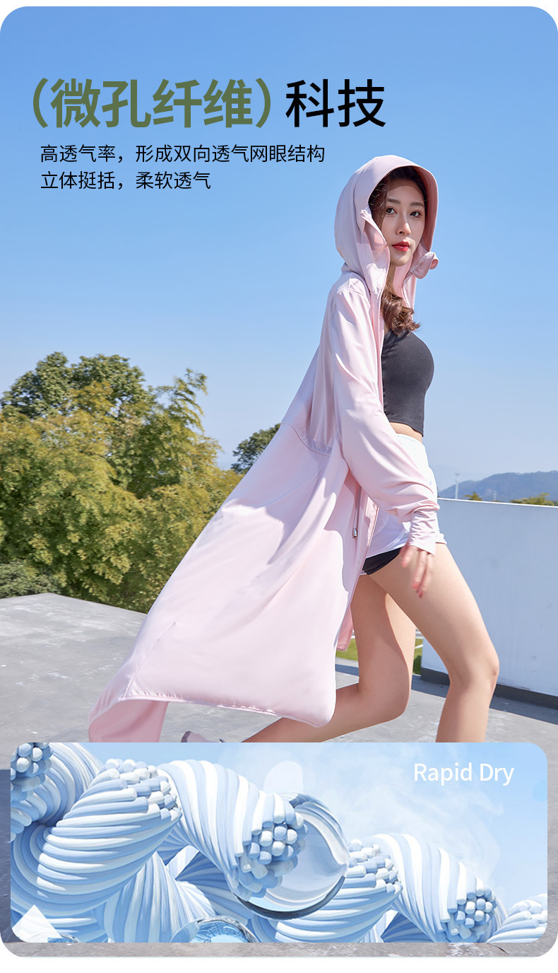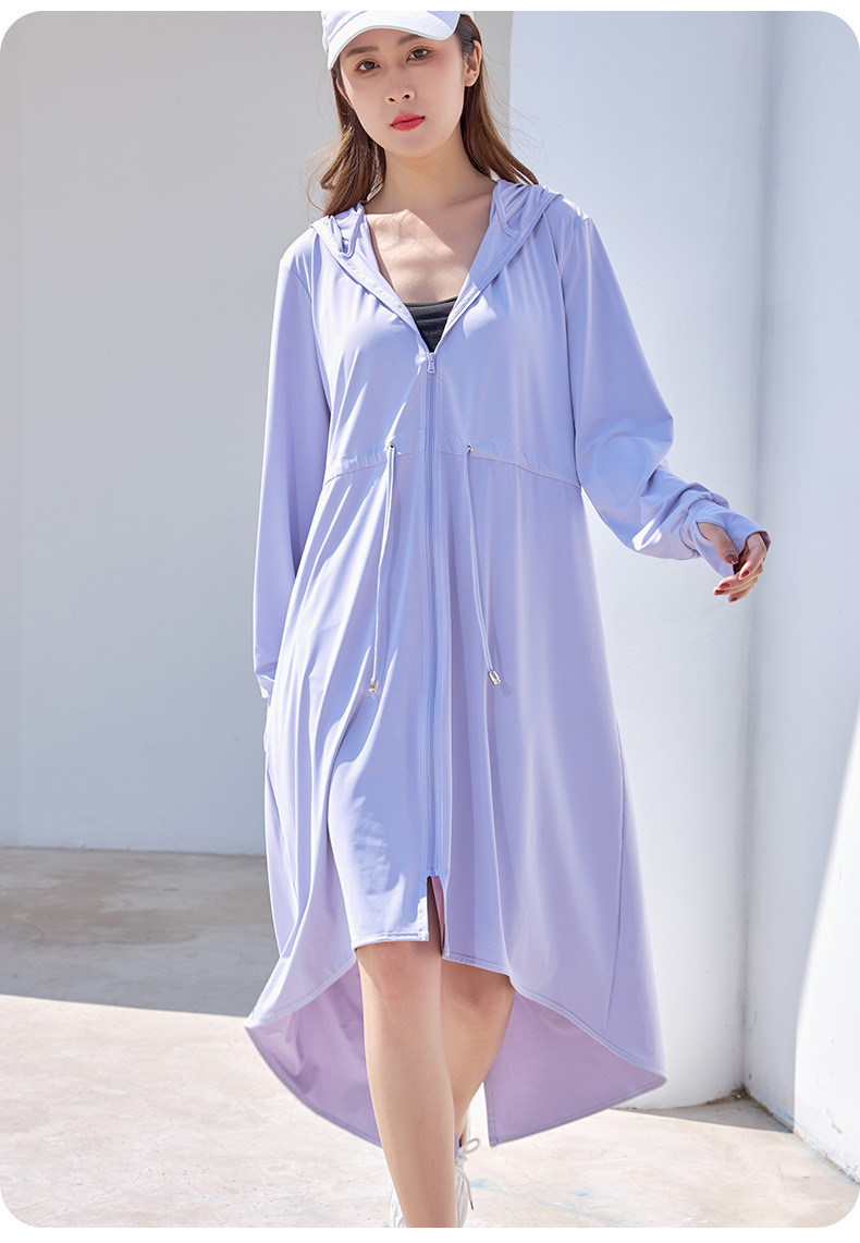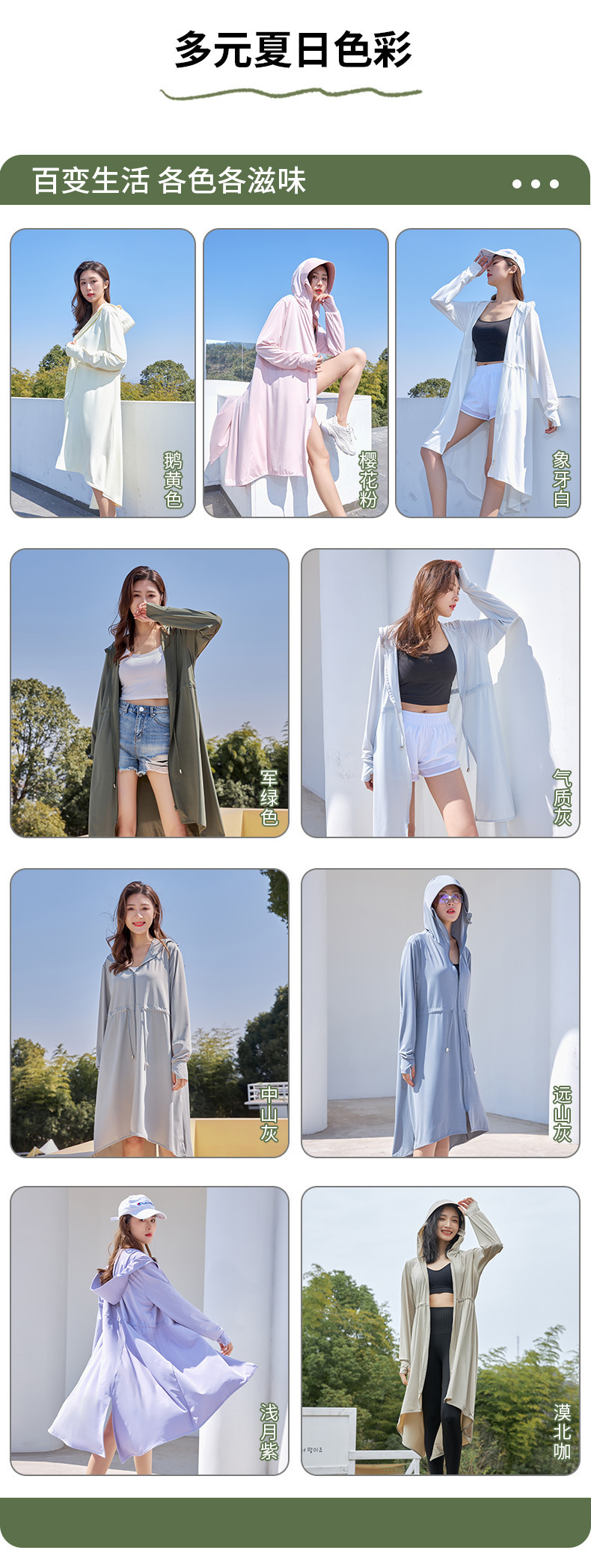 【长款凉感防晒服,全身透气~】夏季长款连帽防晒衣女 长袖遮阳宽松收腰显瘦 舒适出行休闲外套防晒-QQ
