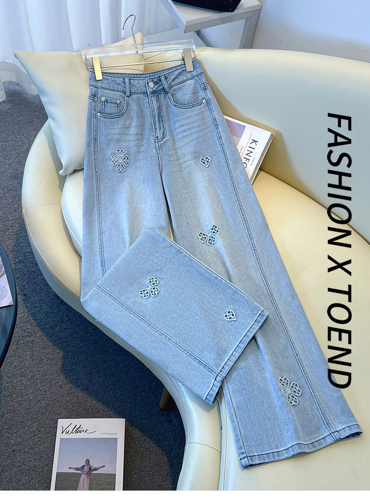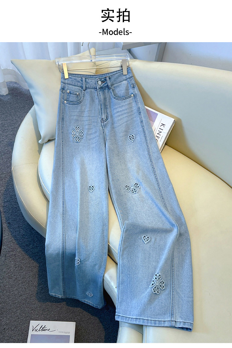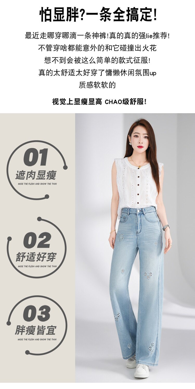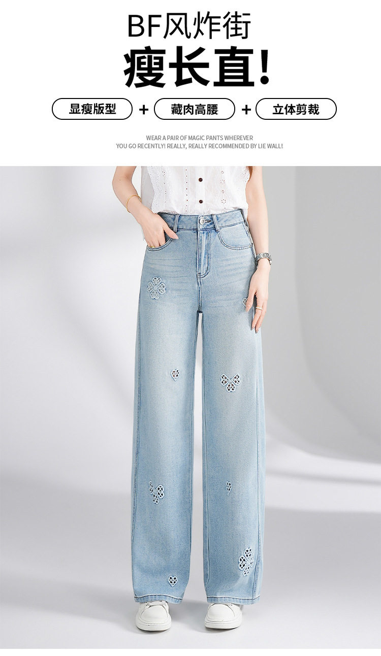 「自」全新升级【铂金会员183/天猫249/差价66】(11447)洛诗琳气质镂空刺绣牛仔裤女2026新款高腰显瘦窄版直筒裤