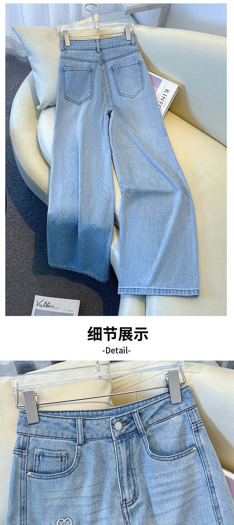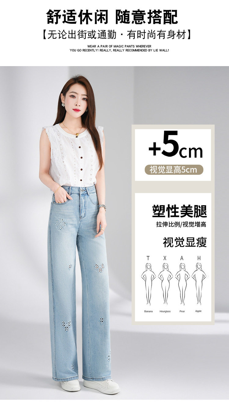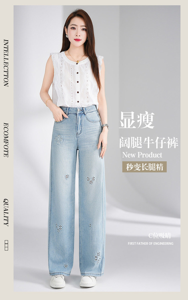 「自」全新升级【铂金会员183/天猫249/差价66】(11447)洛诗琳气质镂空刺绣牛仔裤女2026新款高腰显瘦窄版直筒裤