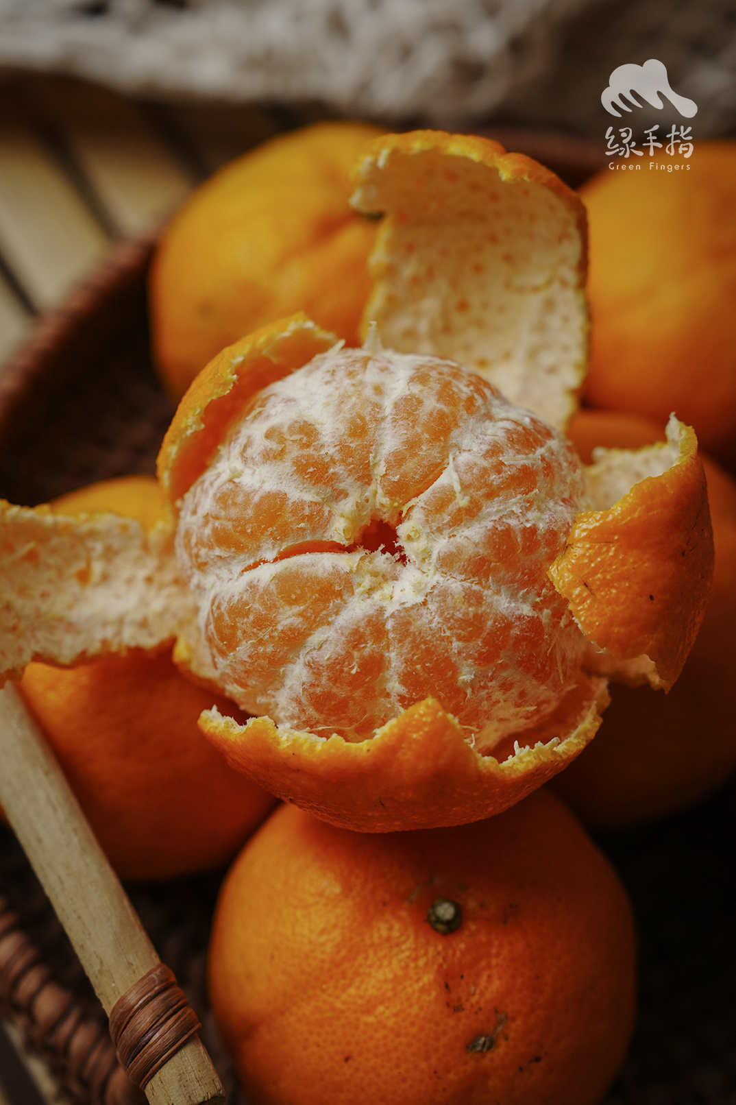 成熟的芦柑外皮呈现鲜艳的橙红色,色泽十分亮丽,就像冬日的一抹暖阳,金黄圆润,圆胖胖的,看着就喜人。芦柑的果皮相对较薄,还很好剥皮,化渣率高,味道酸甜适中。