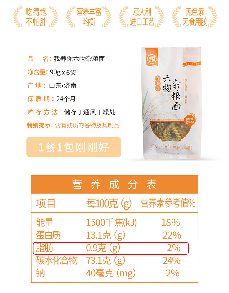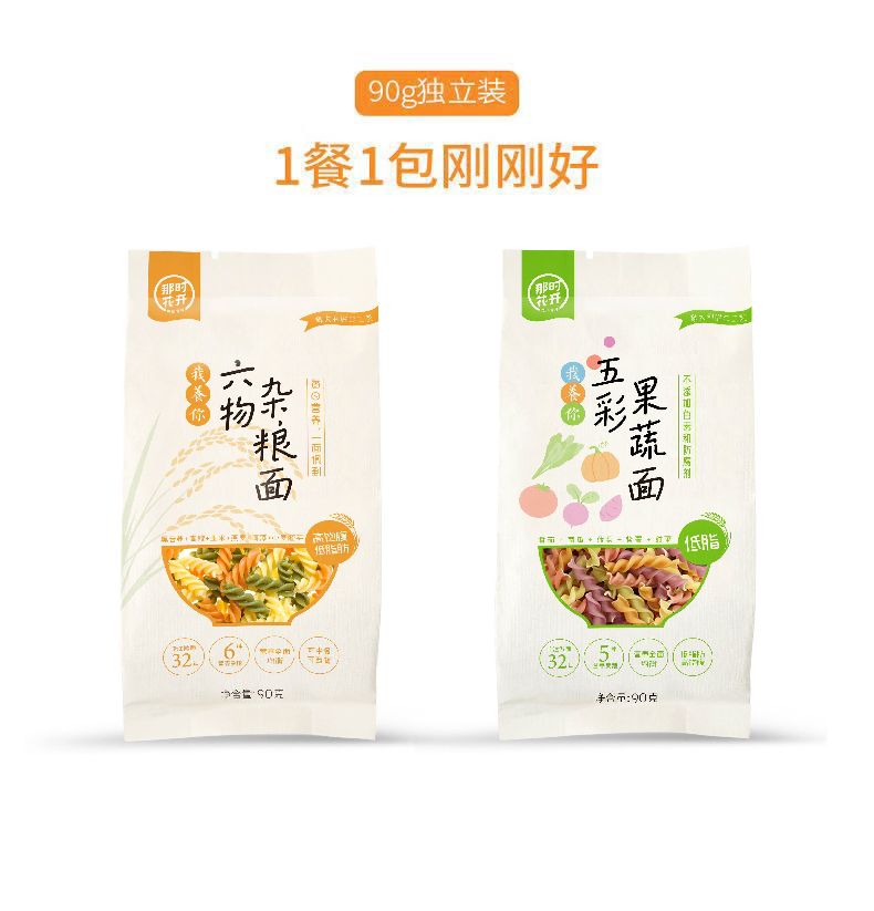 【买六送二】营养饱腹 不怕挑食不怕胖 | 那时花开六物杂粮面+五彩果蔬面 食材面条主食 90g*8袋/18袋/30袋