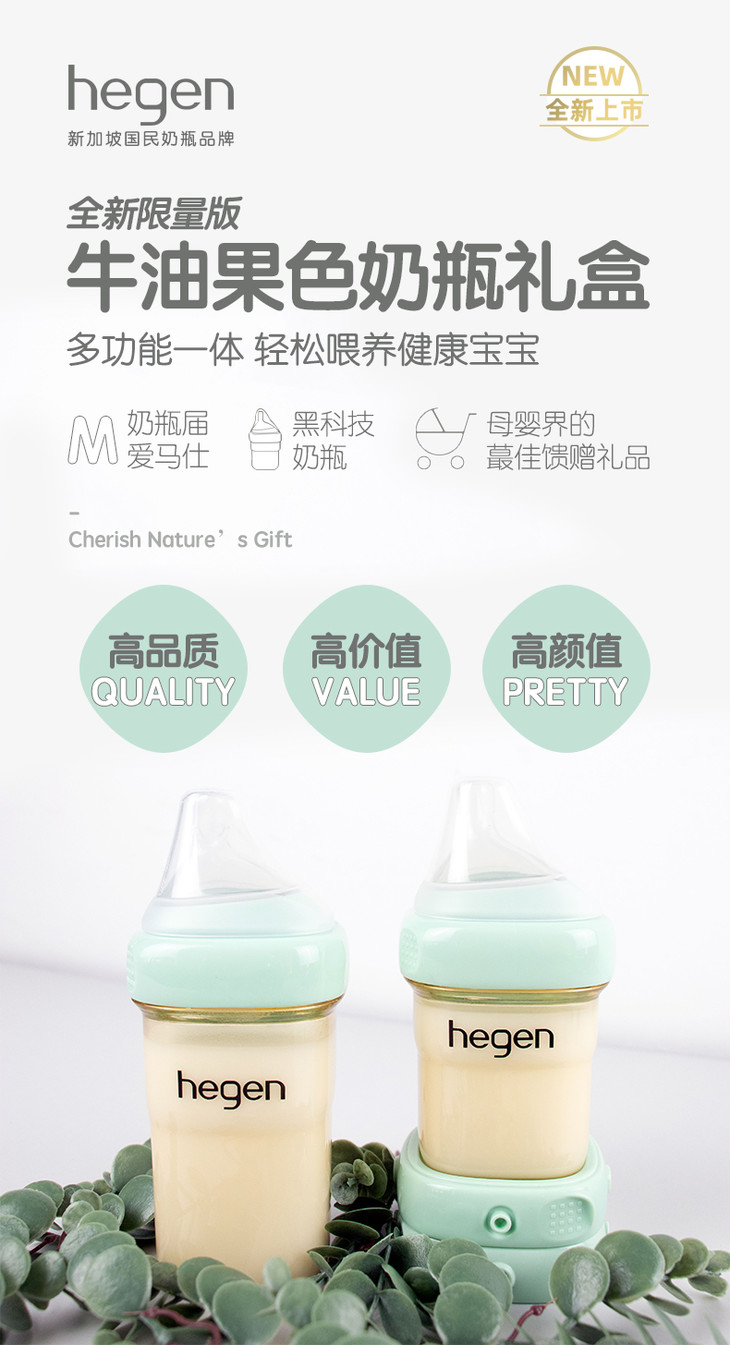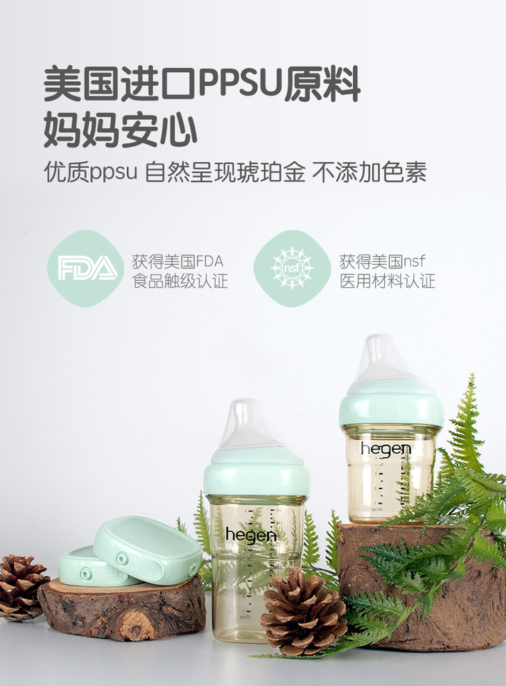 hegen新加坡原装进口新生婴儿防胀气耐摔宽口径PPSU奶瓶礼盒套装