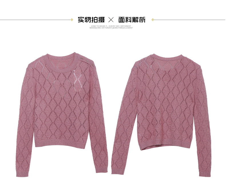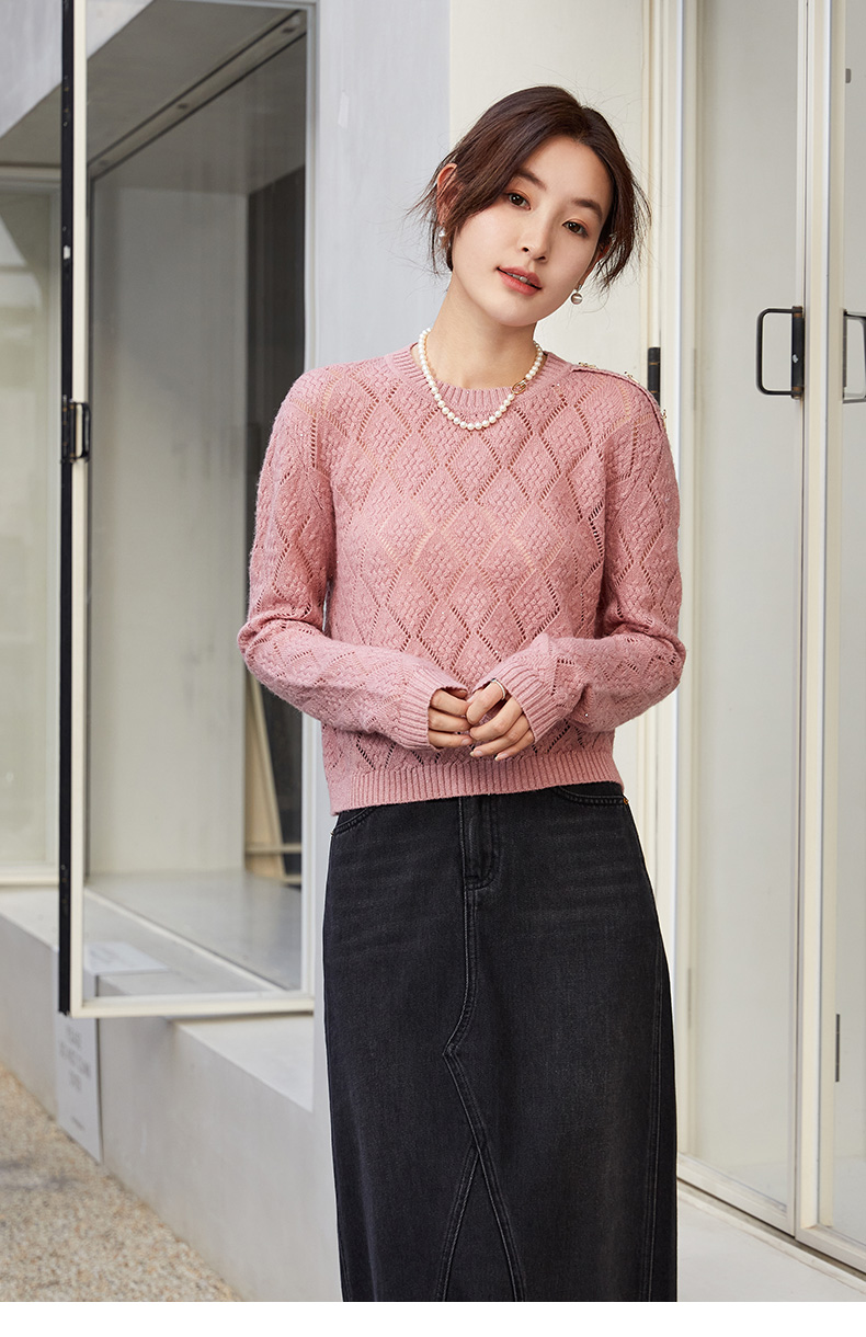 精致感爆棚!灰色镂空菱格针织衫,珍珠点缀超优雅