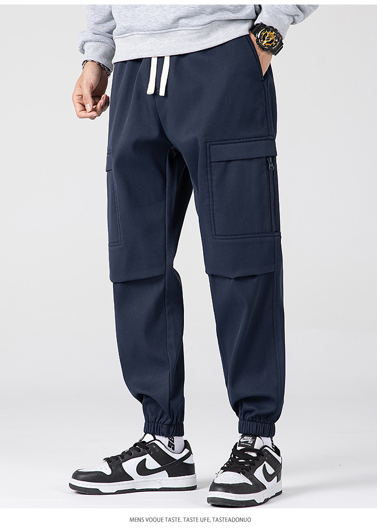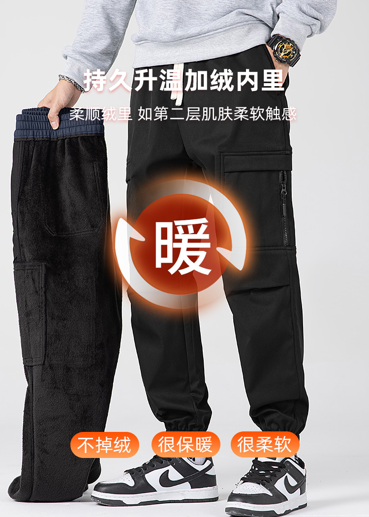 【加绒保暖】罗蒙男士冬季加绒休闲裤工装版型束脚设计腰部抽绳侧边大口袋时尚百搭长裤子