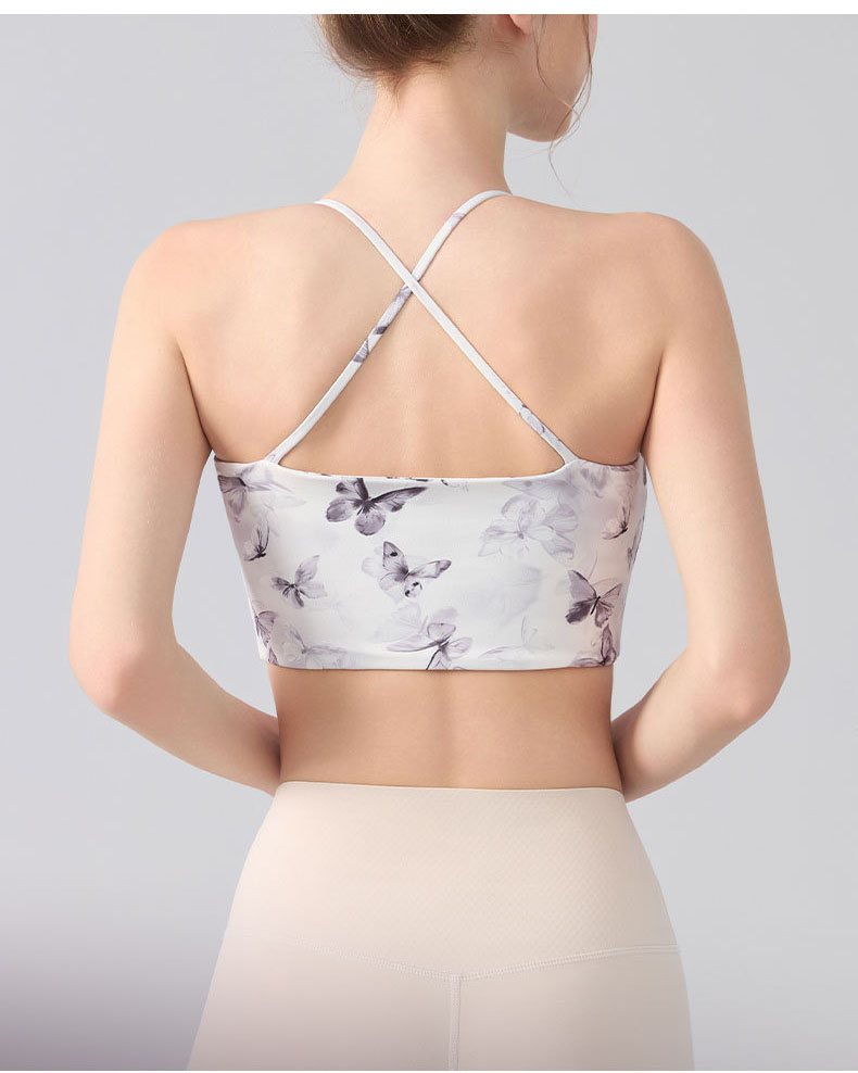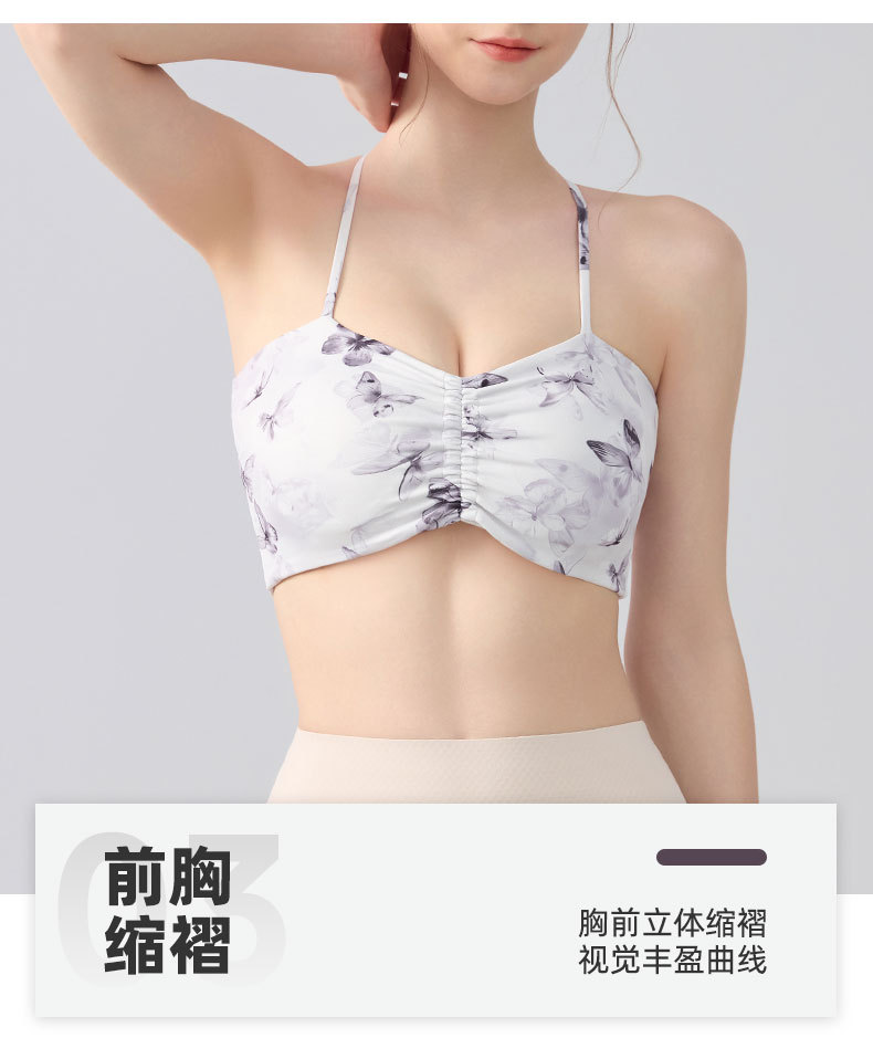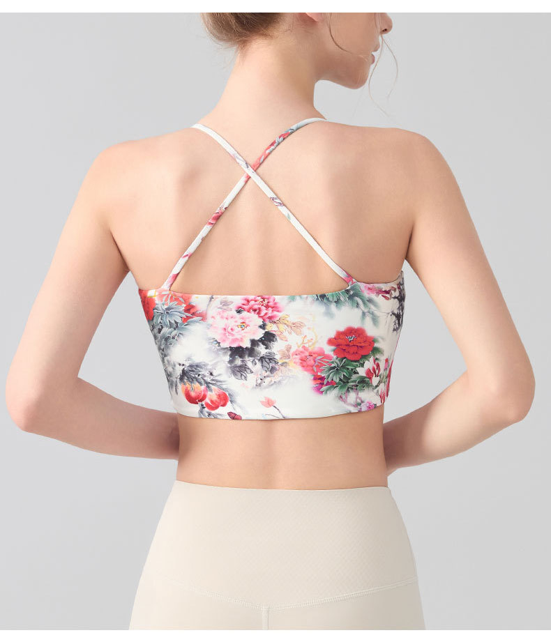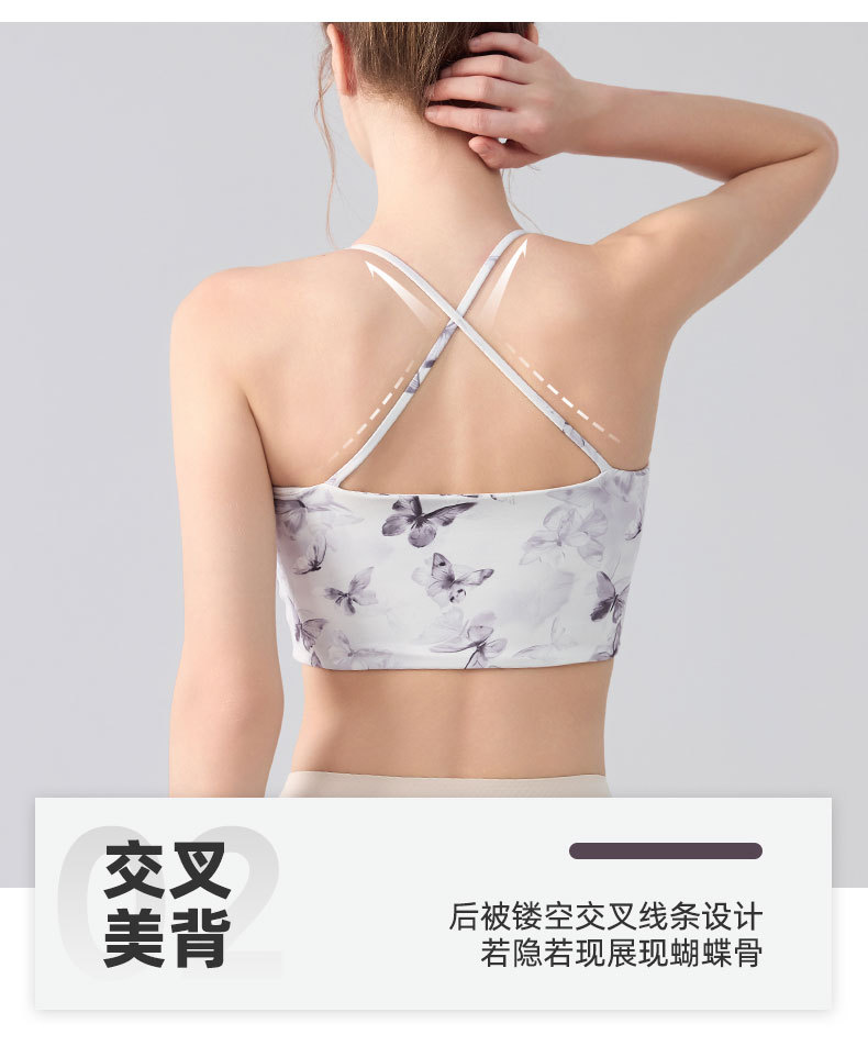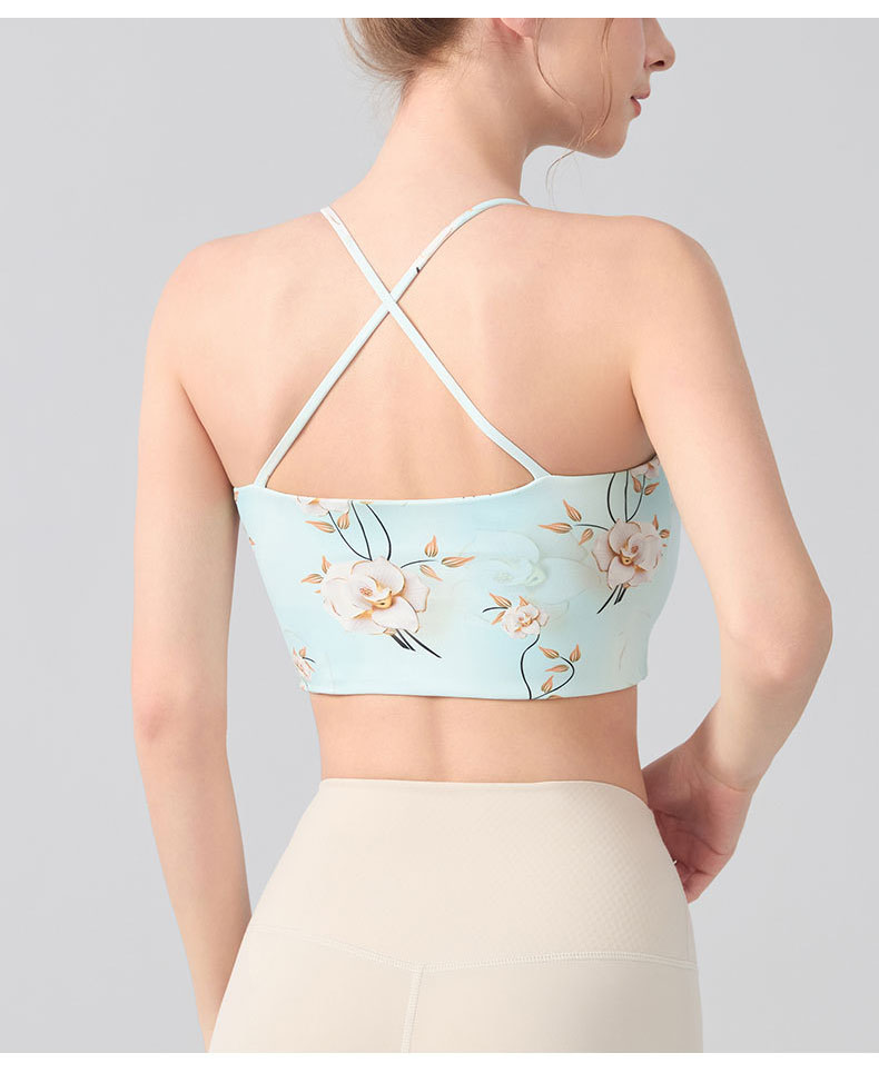 跃牌【海听系列】交叉美背固定杯健身瑜伽服浪漫休闲印花运动文胸XC80