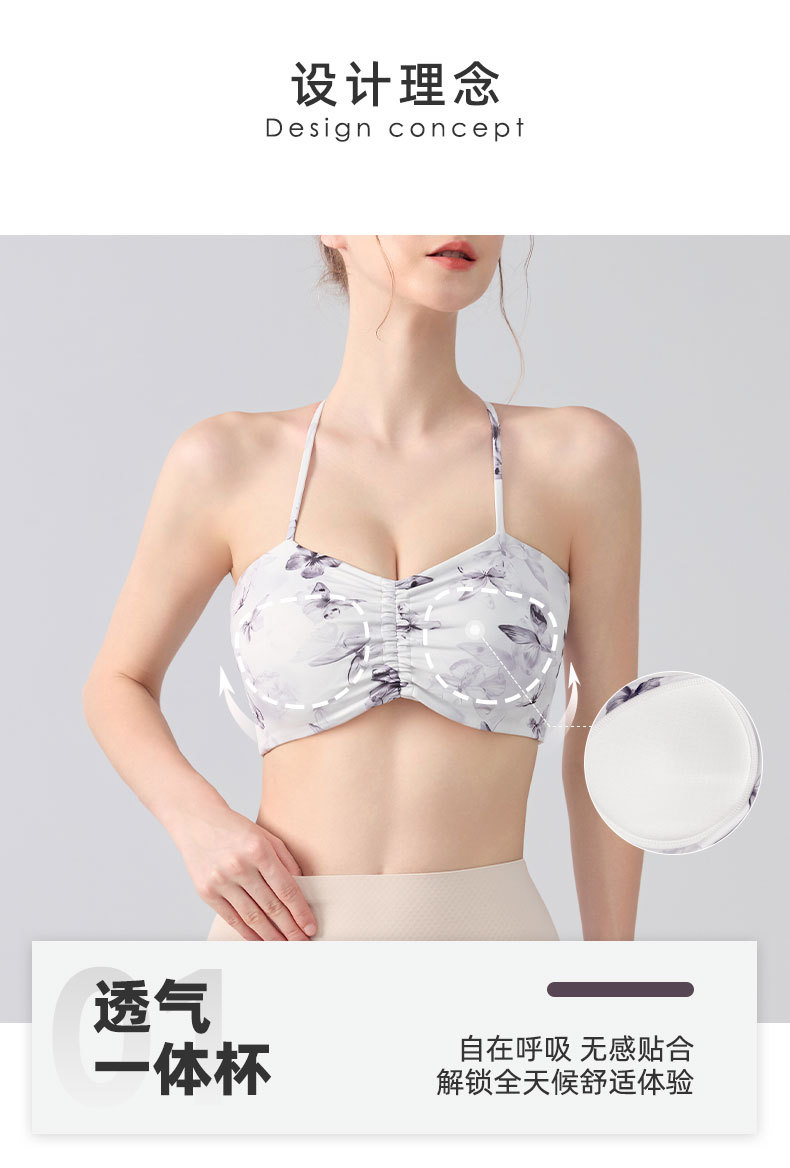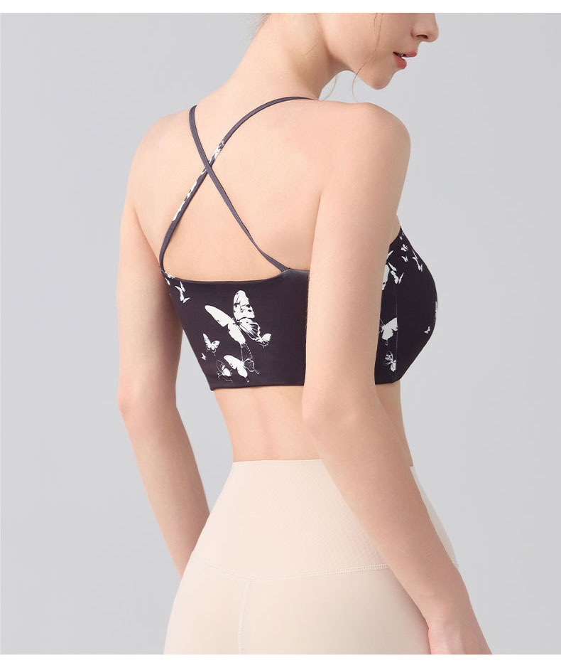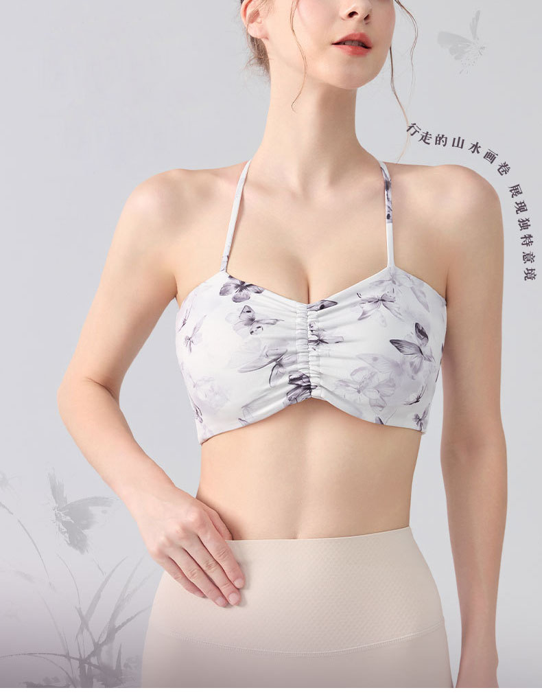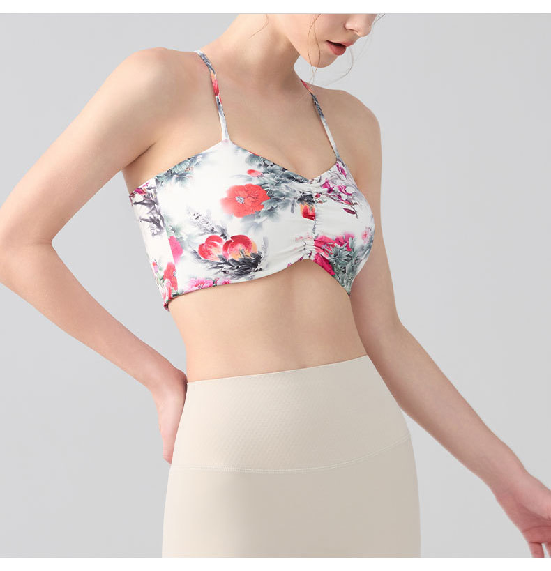 跃牌【海听系列】交叉美背固定杯健身瑜伽服浪漫休闲印花运动文胸XC80