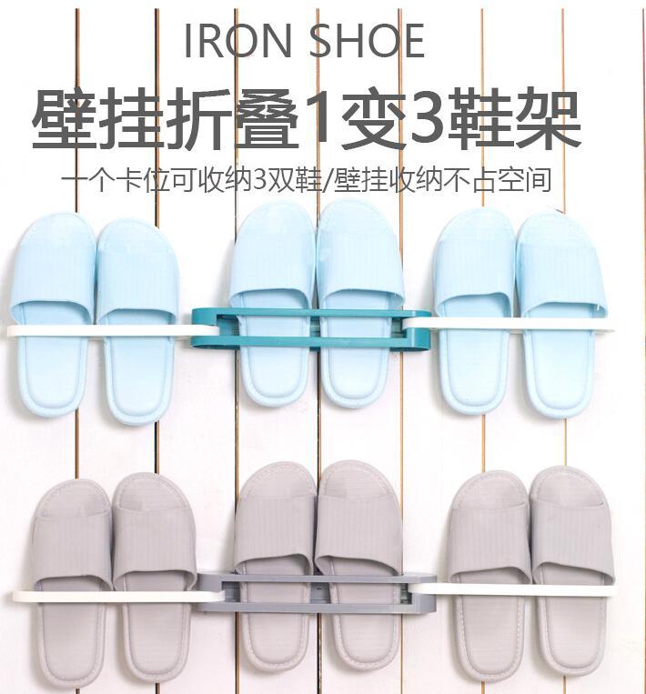 一变三折叠拖鞋架壁挂伸缩收纳架