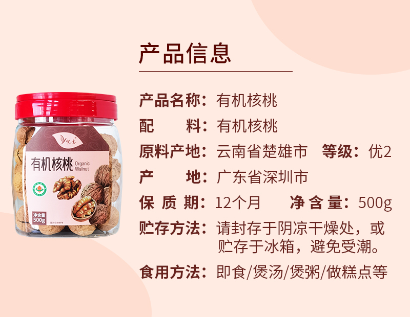 悦意 有机核桃A500g