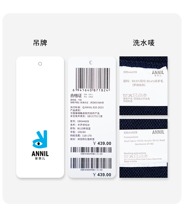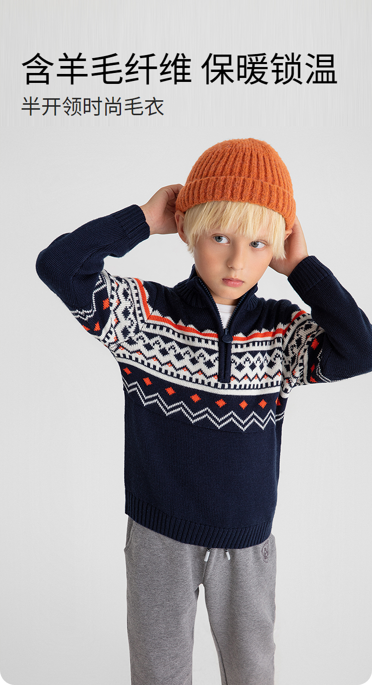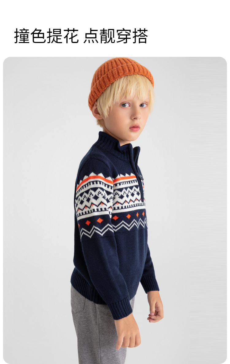 男童半开领毛衫冬季新款安奈儿童装EB544609