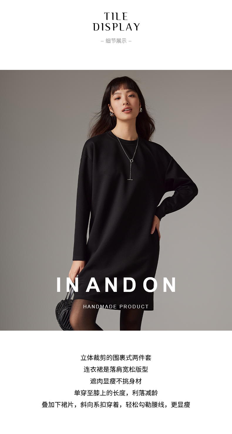 IN AND ON羊毛长袖懒人围裹式半身裙收腰显瘦人字纹针织连衣裙53771