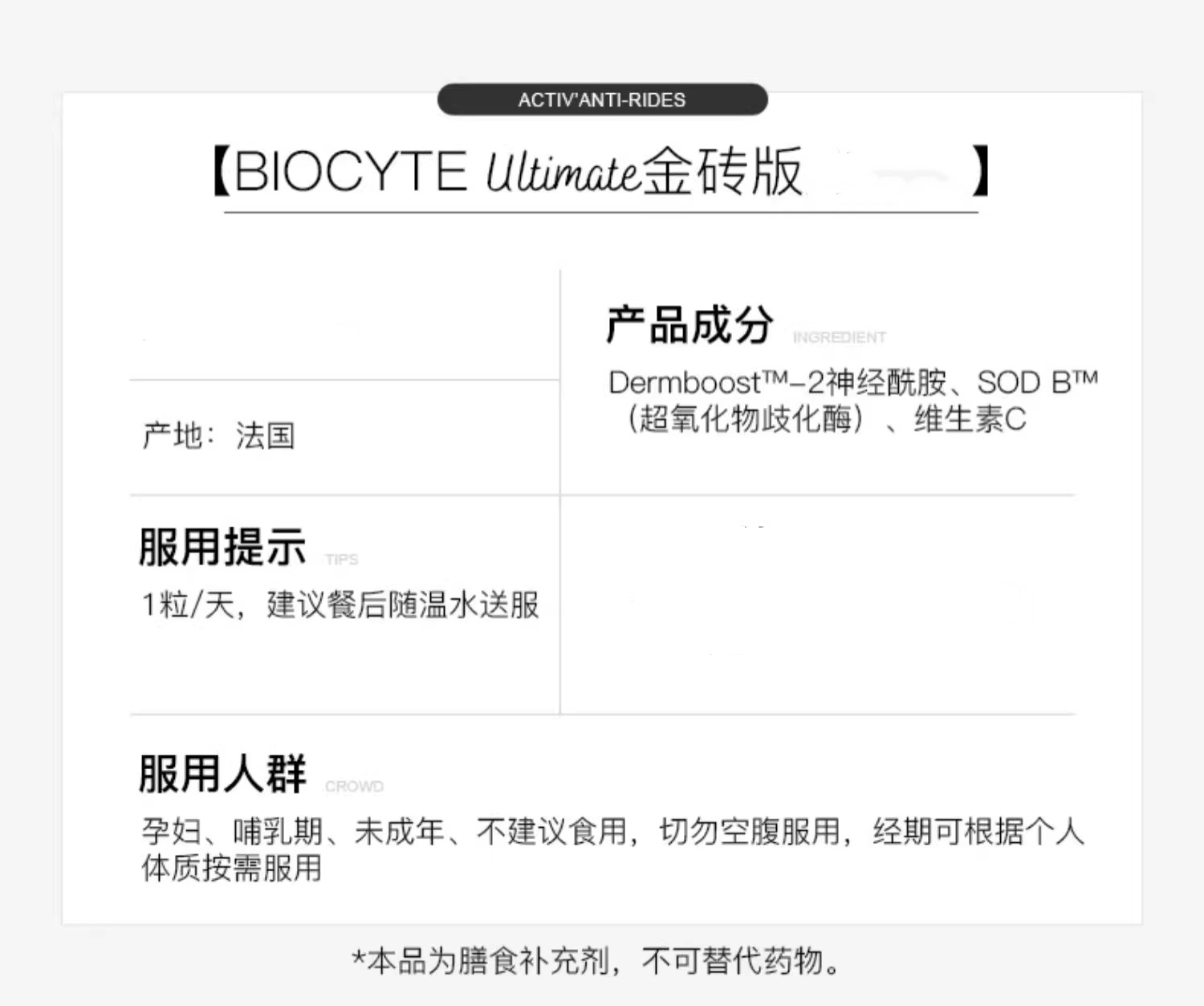 本产品基于原产国研究,效果因人而异