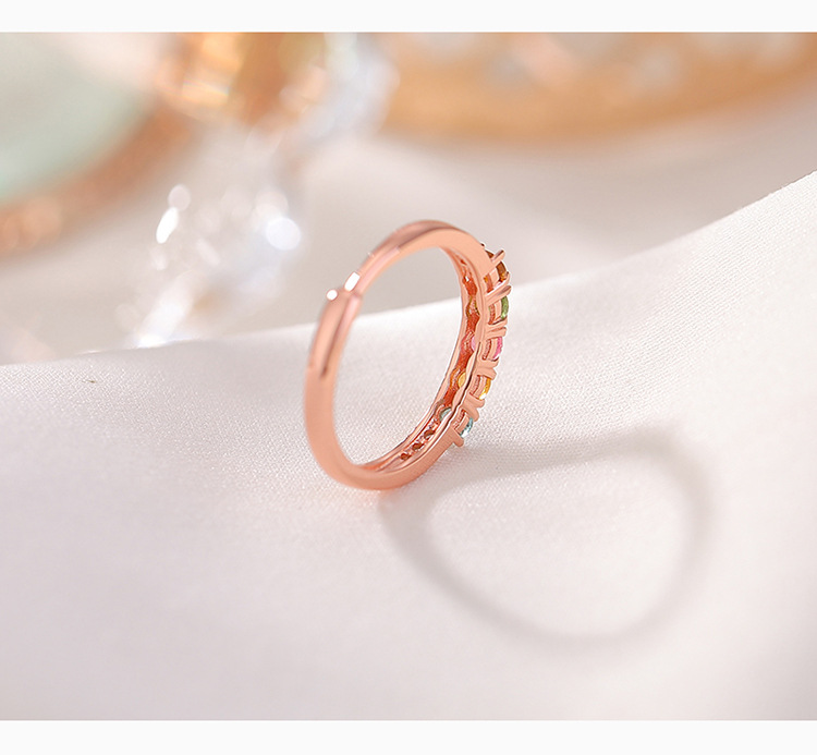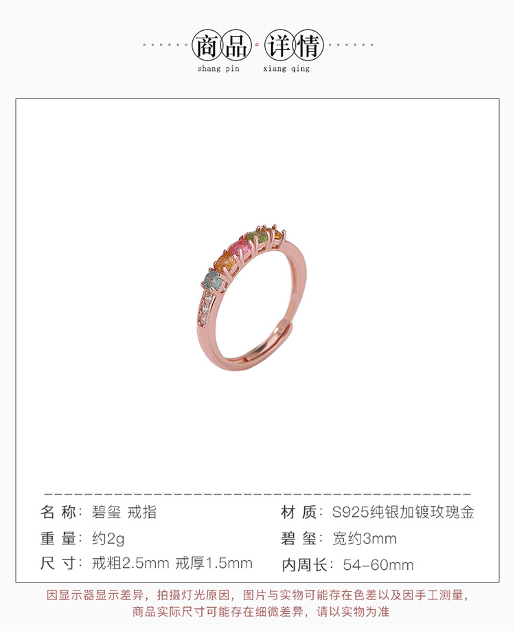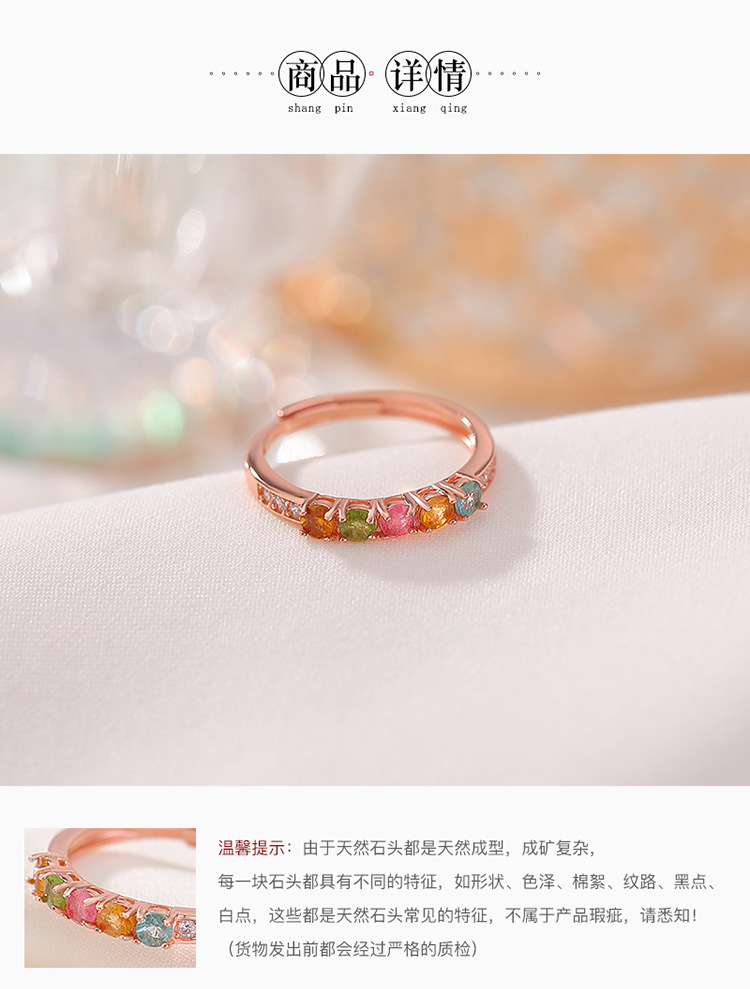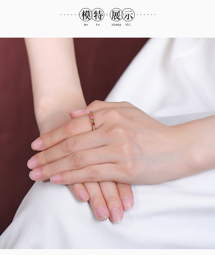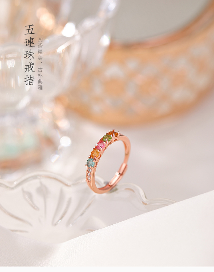 碧玺彩宝银手饰S925纯银玫瑰金色,彩色五连圆珠戒指CW-JZ07035