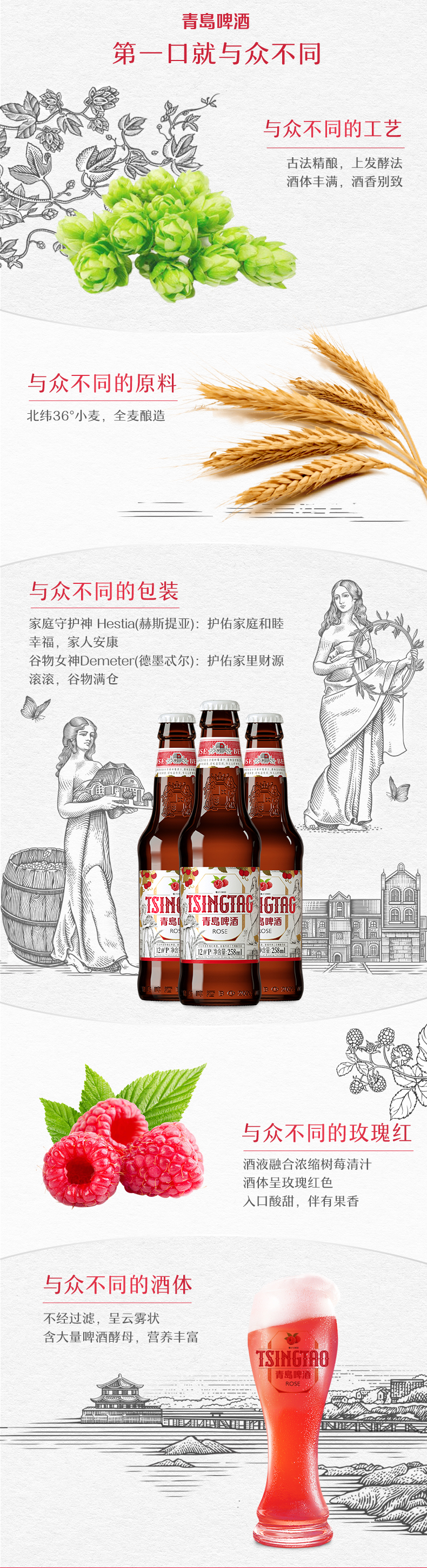 青岛啤酒白啤12度258ml*9瓶/箱(玫瑰红)