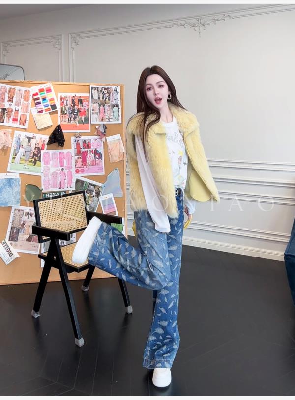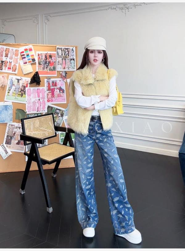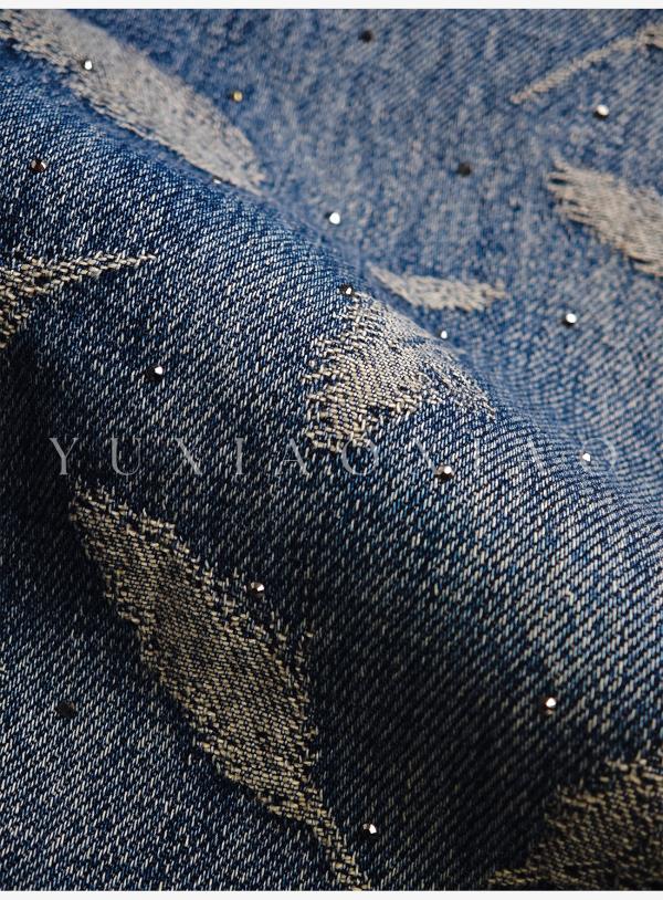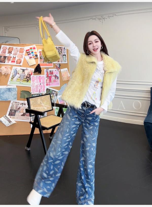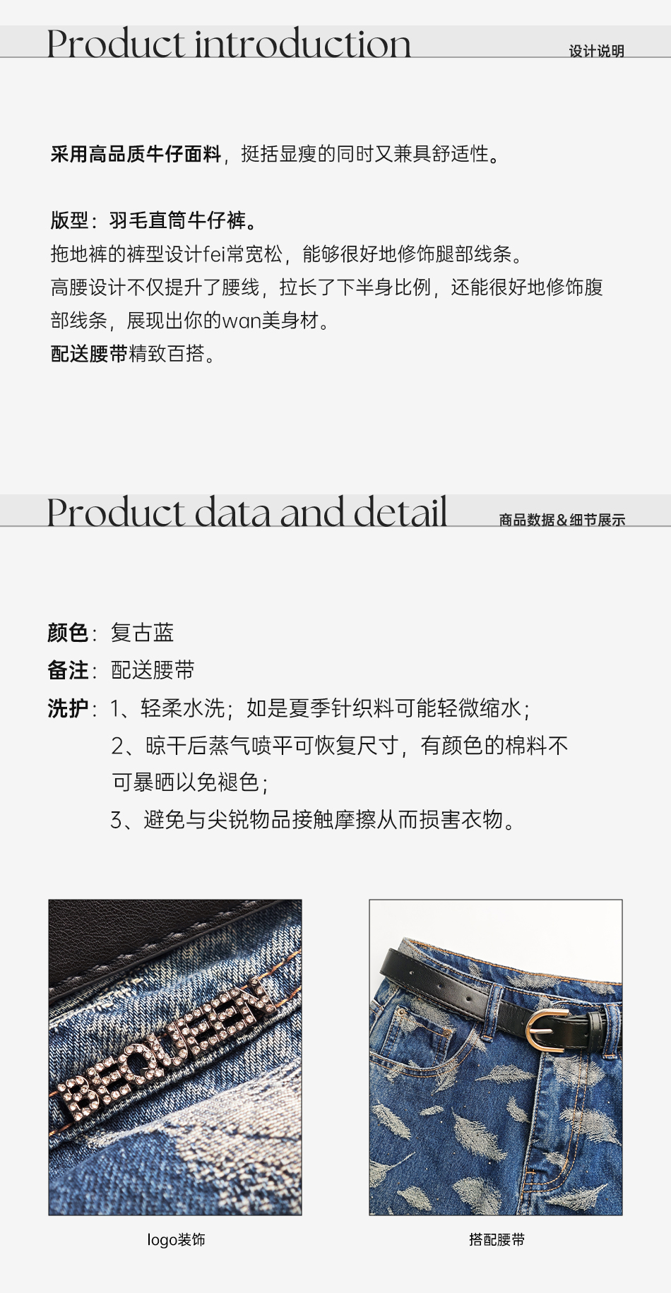 余潇潇【飞羽情书】棉感精美羽毛印花挺括显瘦百搭显腿长直筒牛仔裤