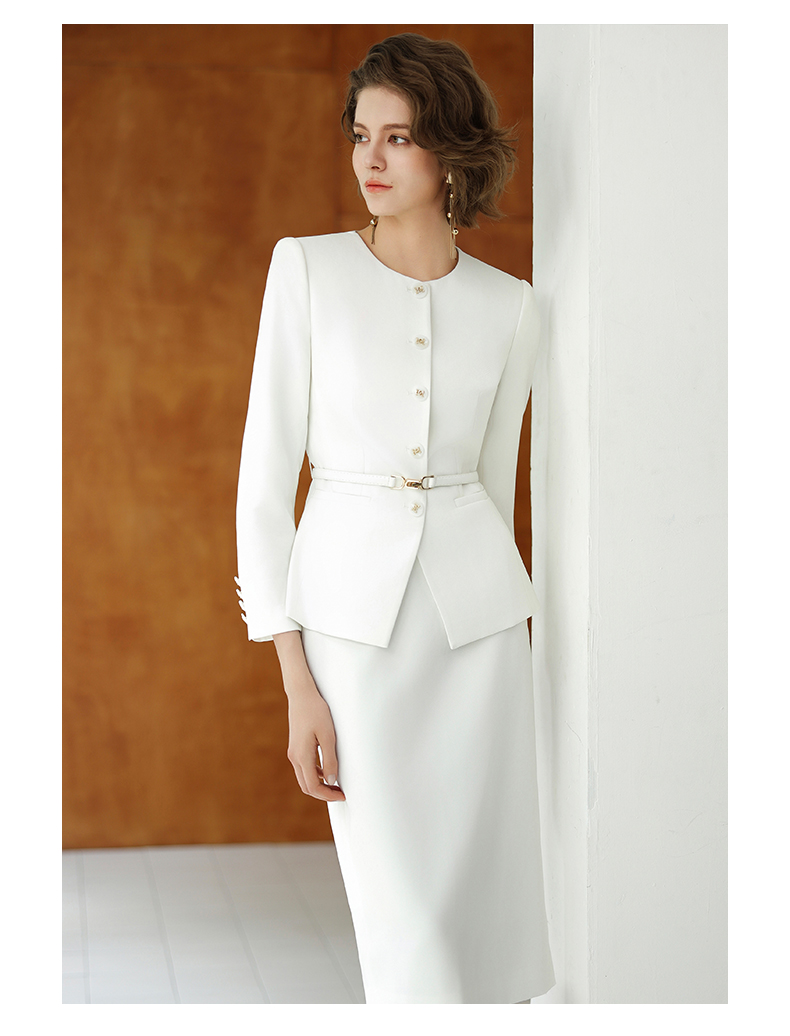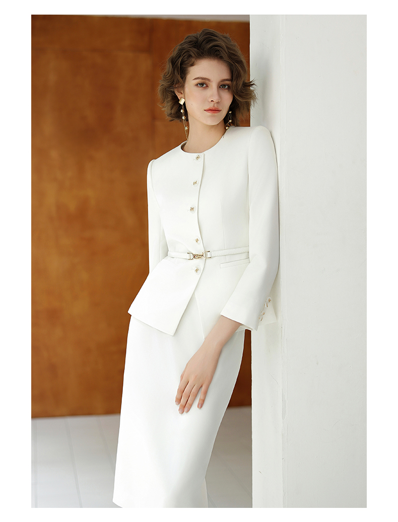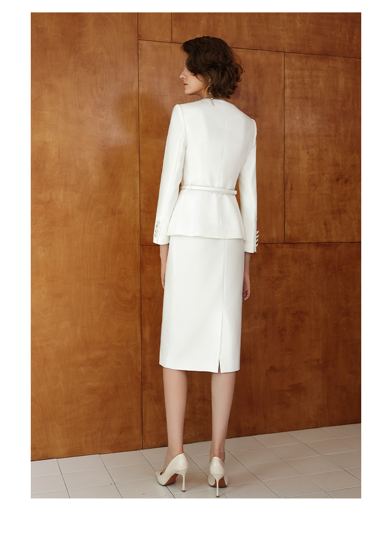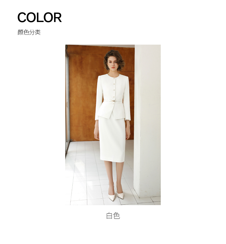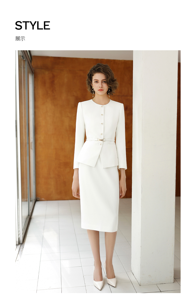 IWY/白色长袖圆领西装半裙两件套气质时尚*收腰显瘦职业套裙CS14306