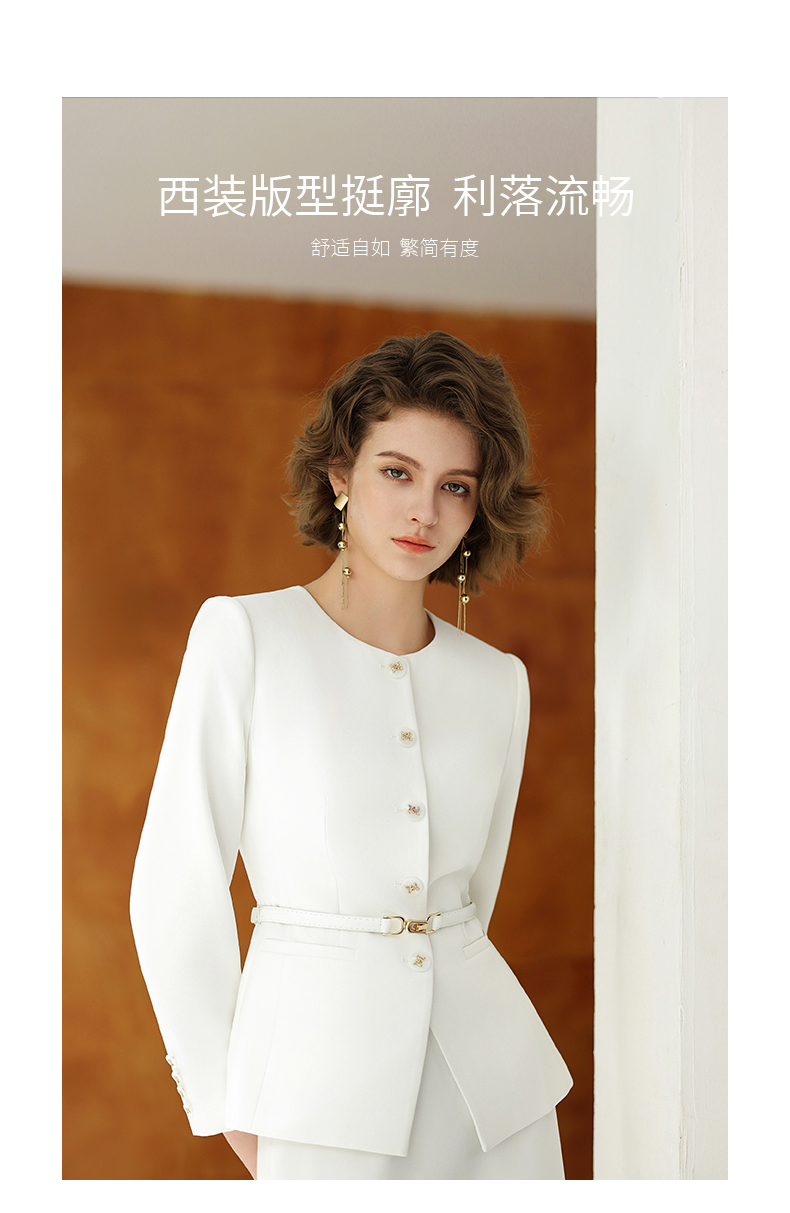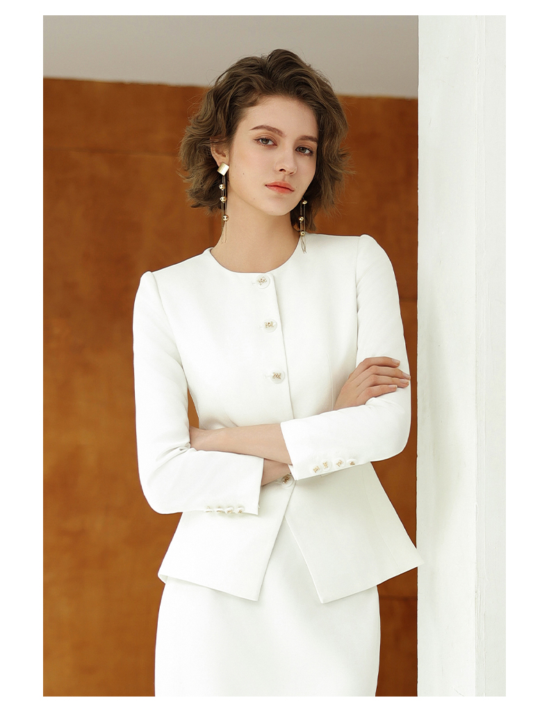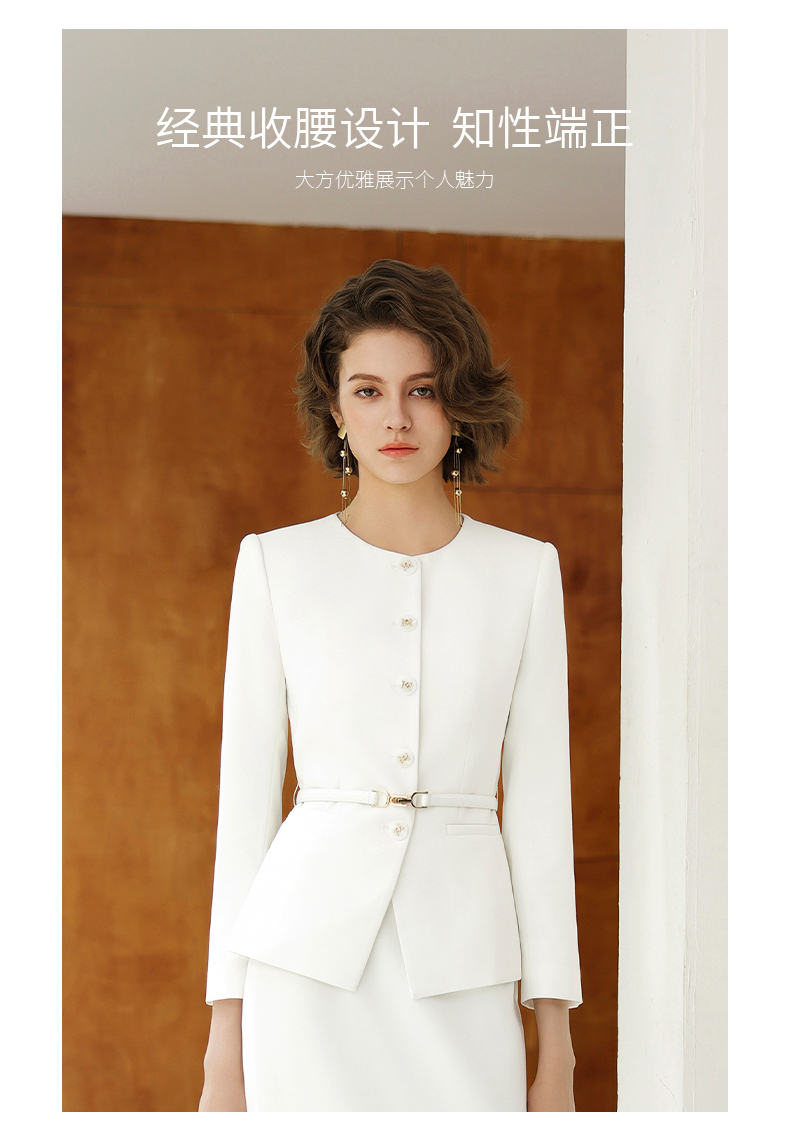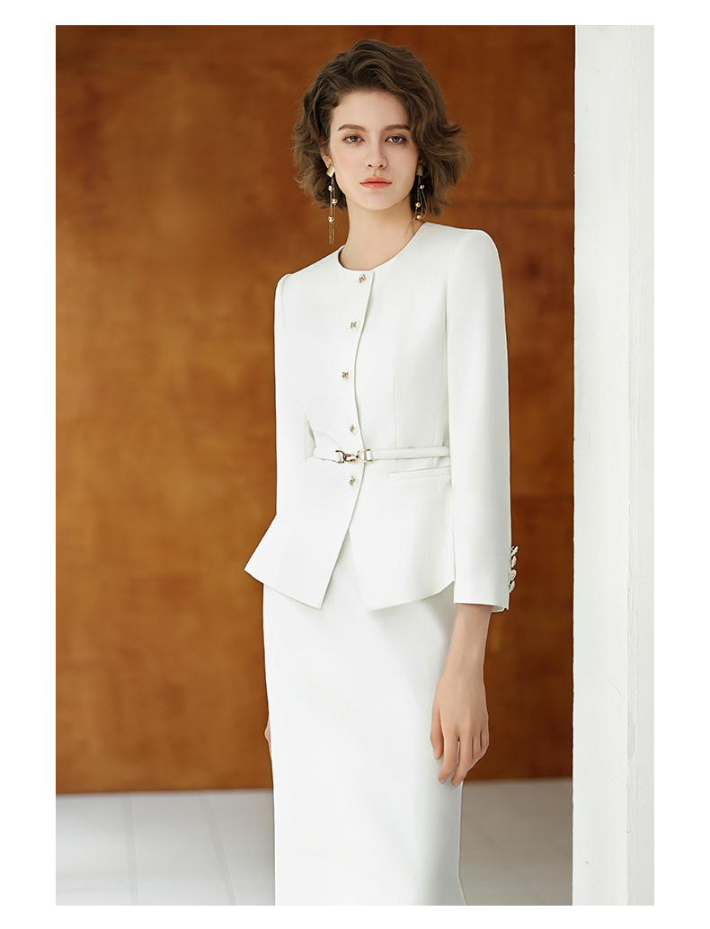 IWY/白色长袖圆领西装半裙两件套气质时尚*收腰显瘦职业套裙CS14306