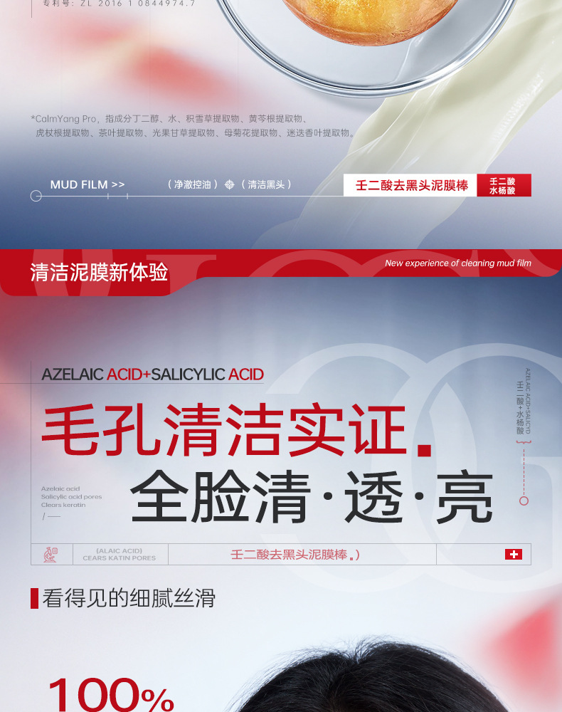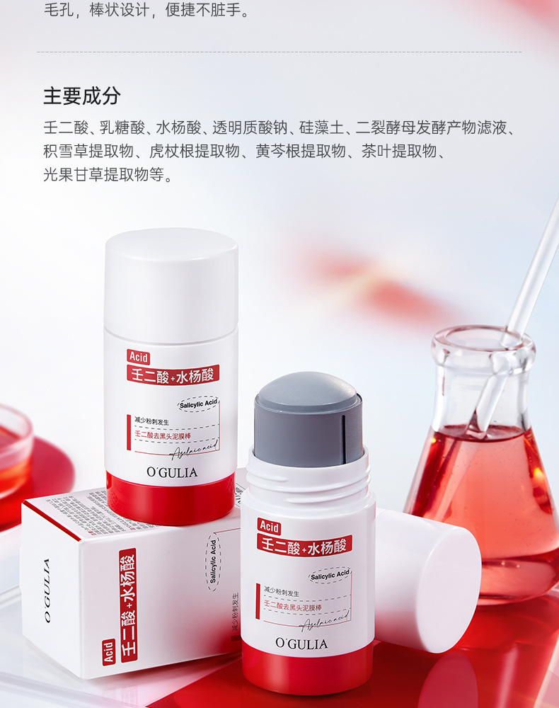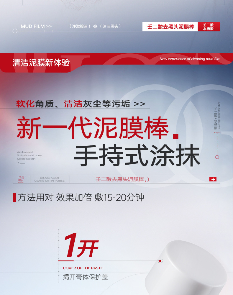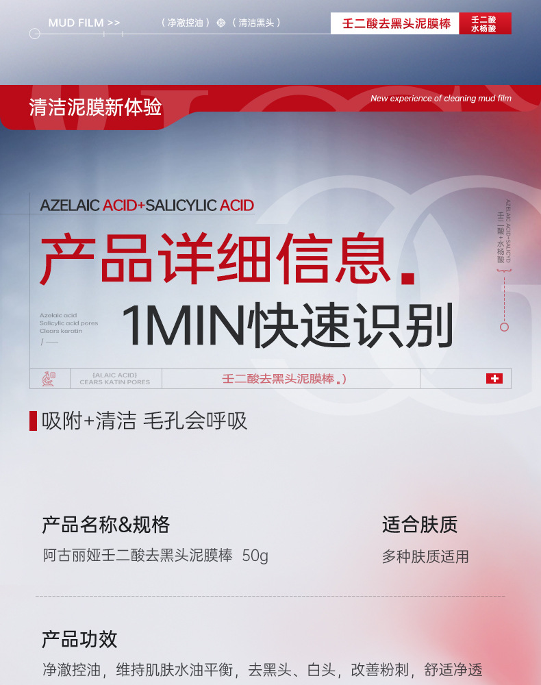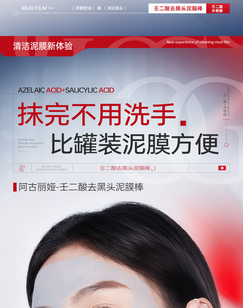【黑头敷出来】阿古丽娅壬二酸去黑头泥膜棒 专利成分 清爽控油 净澈毛孔 好涂抹好冲洗 50g/支