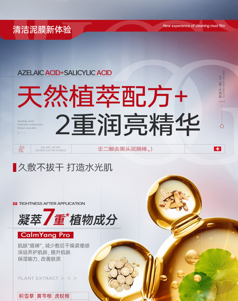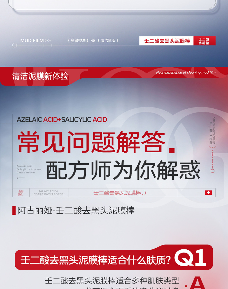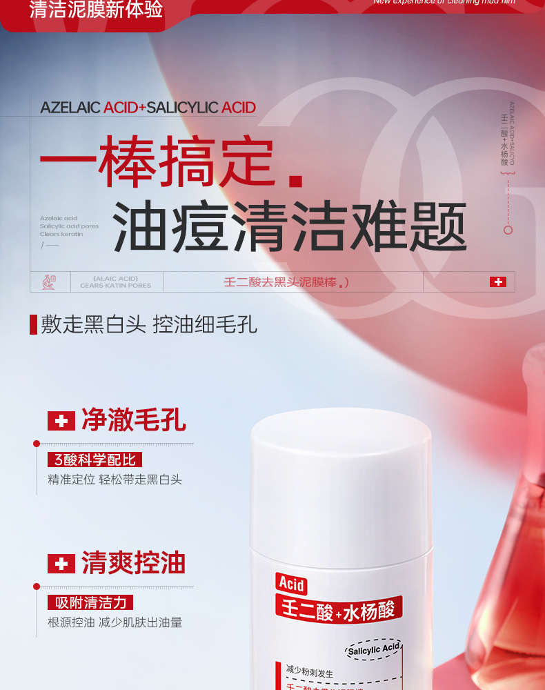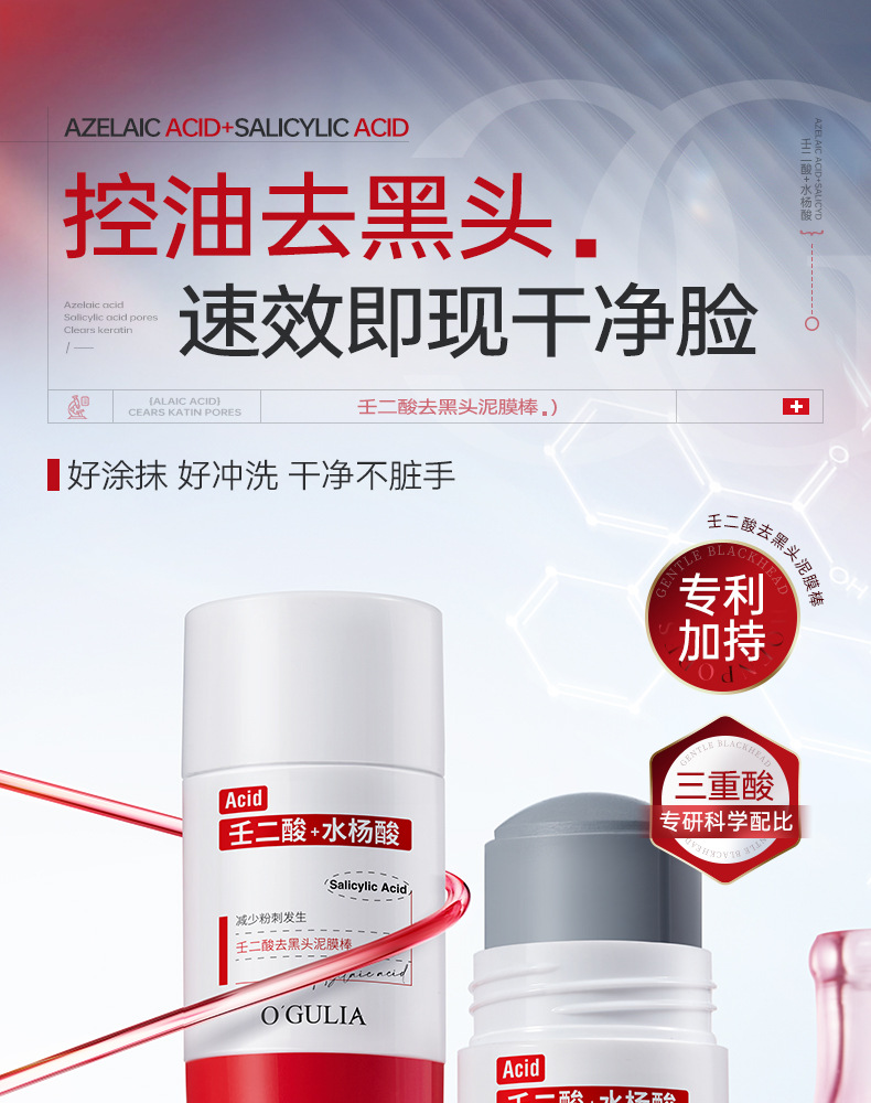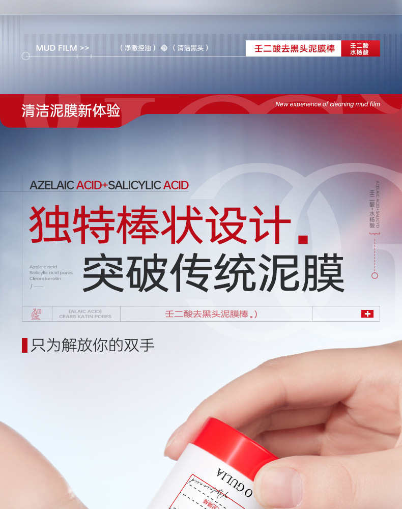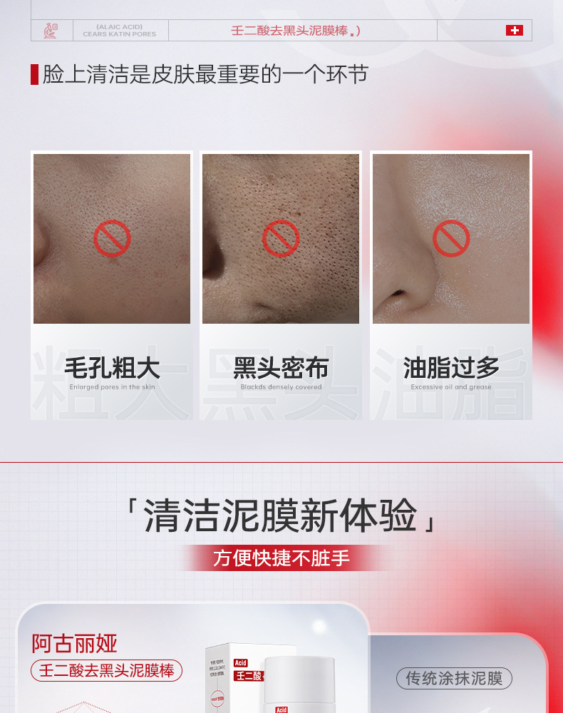 【黑头敷出来】阿古丽娅壬二酸去黑头泥膜棒 专利成分 清爽控油 净澈毛孔 好涂抹好冲洗 50g/支