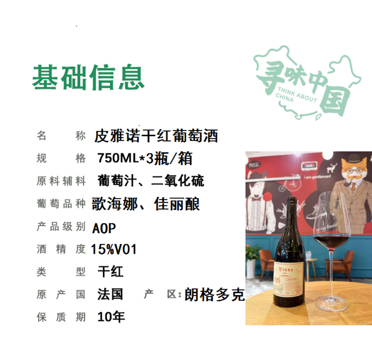 【法国原箱进口 AOP级 】皮雅诺干红葡萄酒 750ml*3瓶/箱礼盒+手提袋 内赠开瓶器