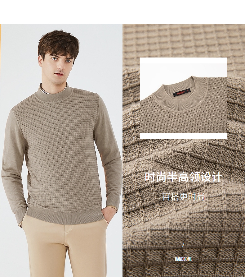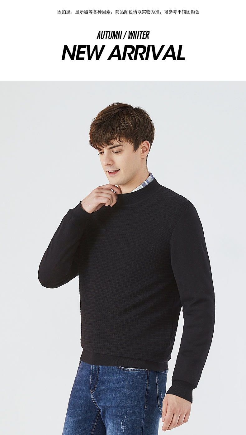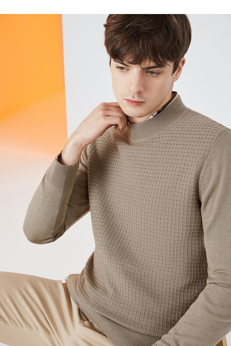 【特价】【羊毛衫】柒牌毛衣男士秋季新款格纹提花休闲时尚半高领毛衫 123Y70270
