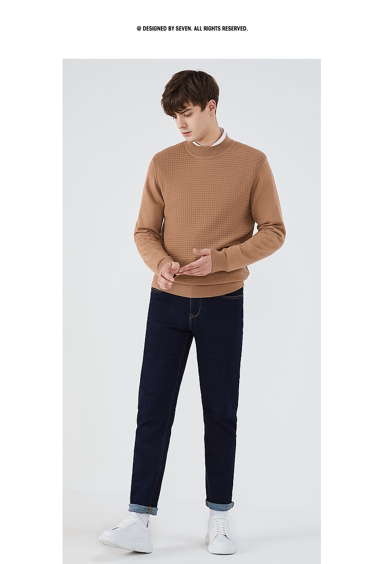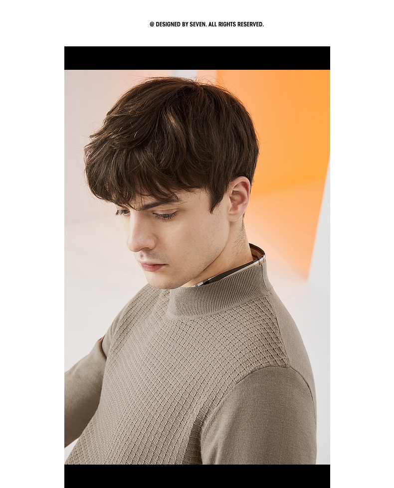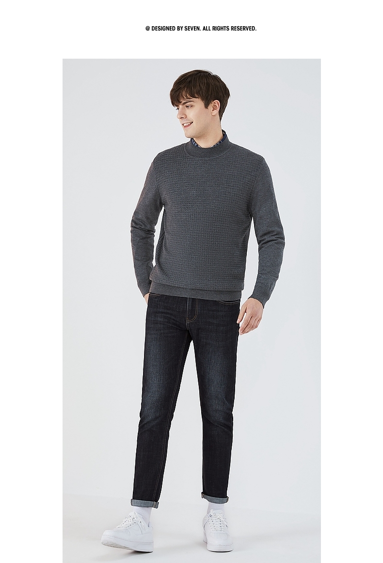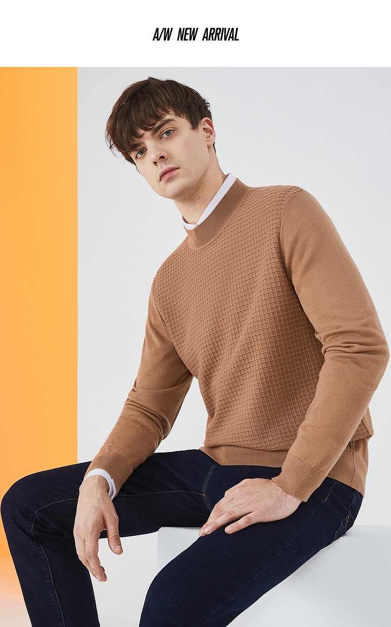 【特价】【羊毛衫】柒牌毛衣男士秋季新款格纹提花休闲时尚半高领毛衫 123Y70270