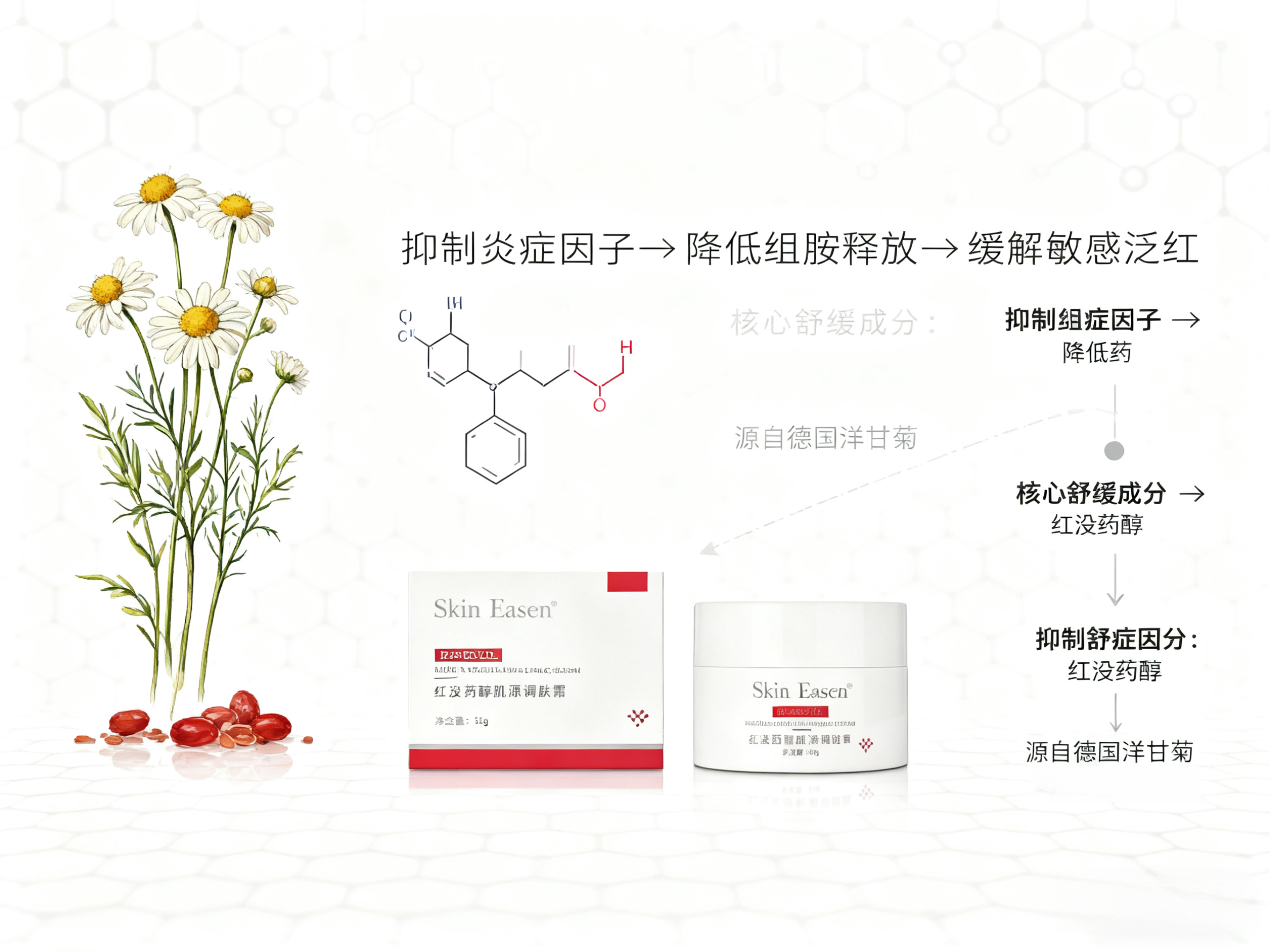 ✔ 60秒快速褪红——德国Symrise红没药醇(+α-红没药醇),刺激反应降低67%*