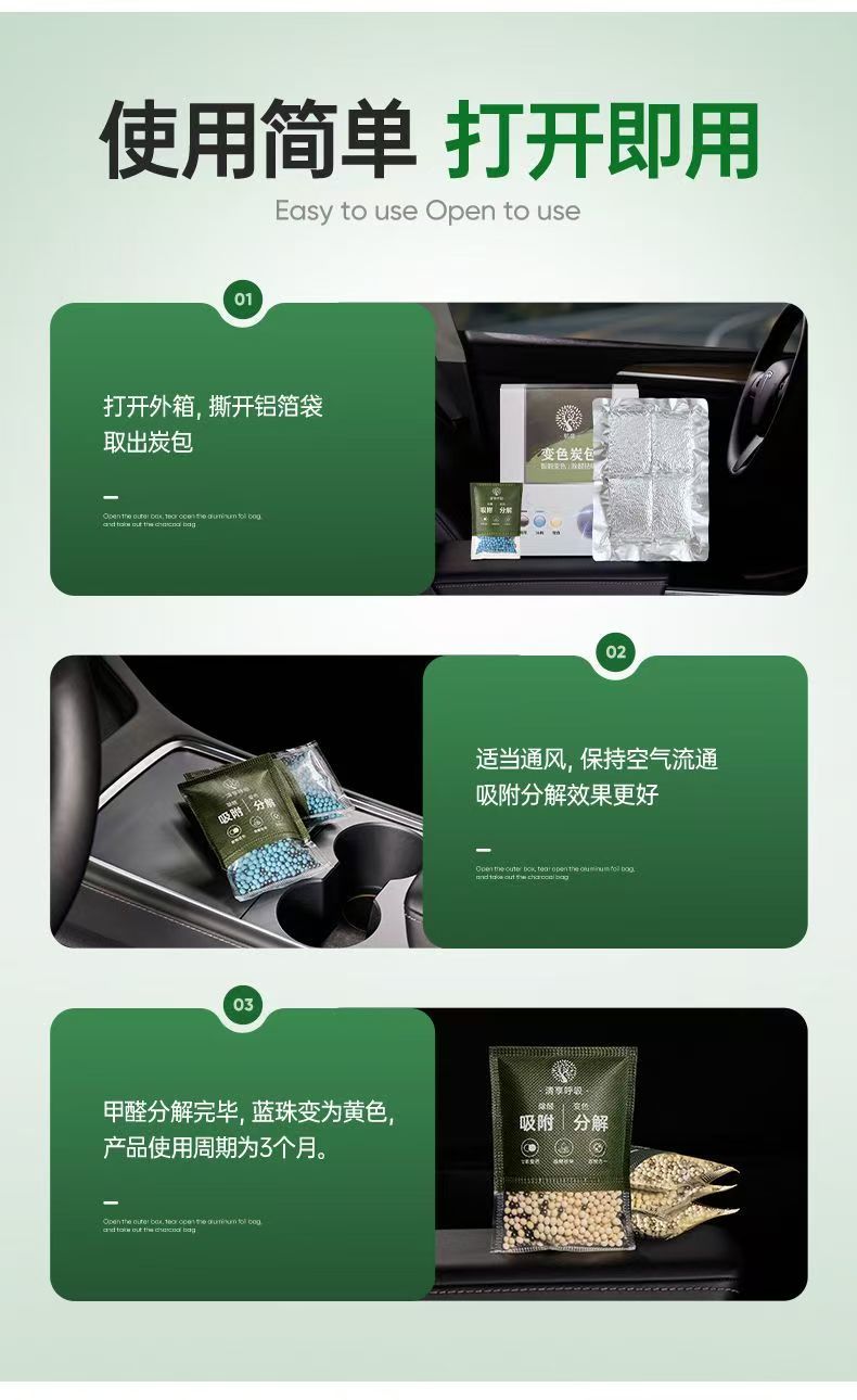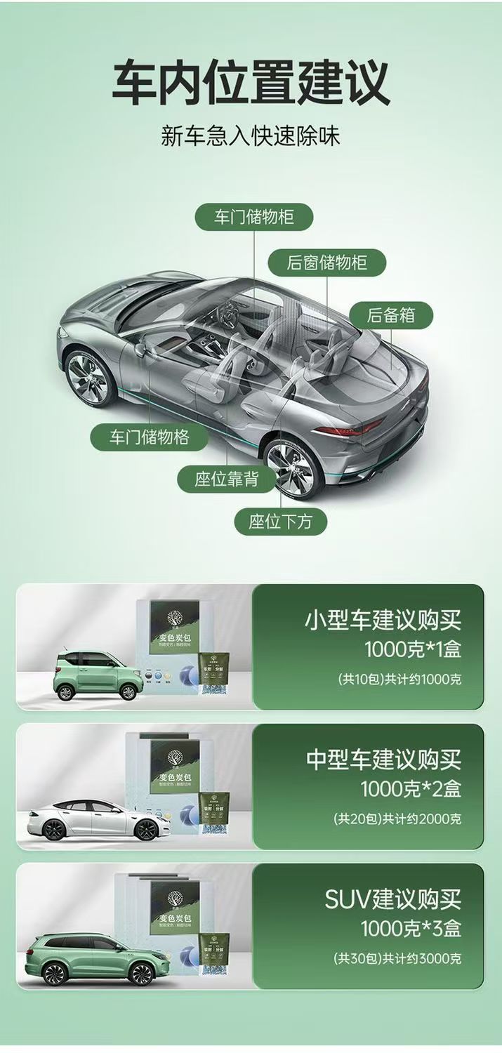 新车除甲醛除异味变色竹炭包汽车用活性炭包车载专用除味车内净化