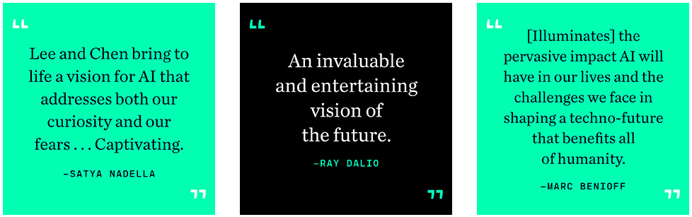 "By blending imaginative storytelling and technical expertise, Kai-Fu Lee and Chen Qiufan bring to life a vision for AI that addresses both our curiosity and our fears. Read this captivating book to better understand how and when certain technologies are likely to mature, and what that could mean for all of us." — Satya Nadella, Chair and CEO, Microsoft