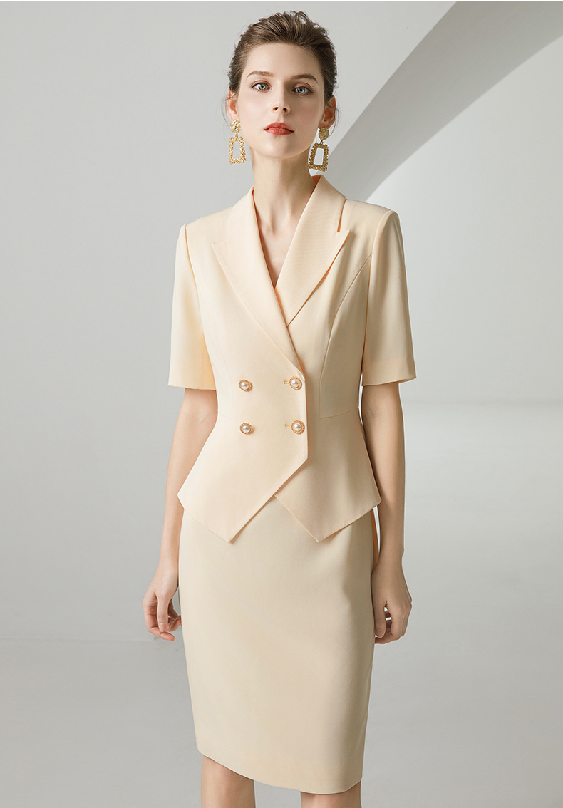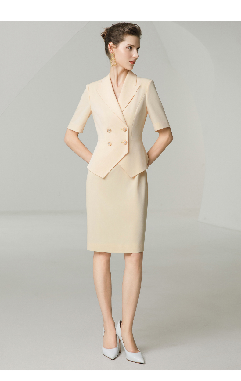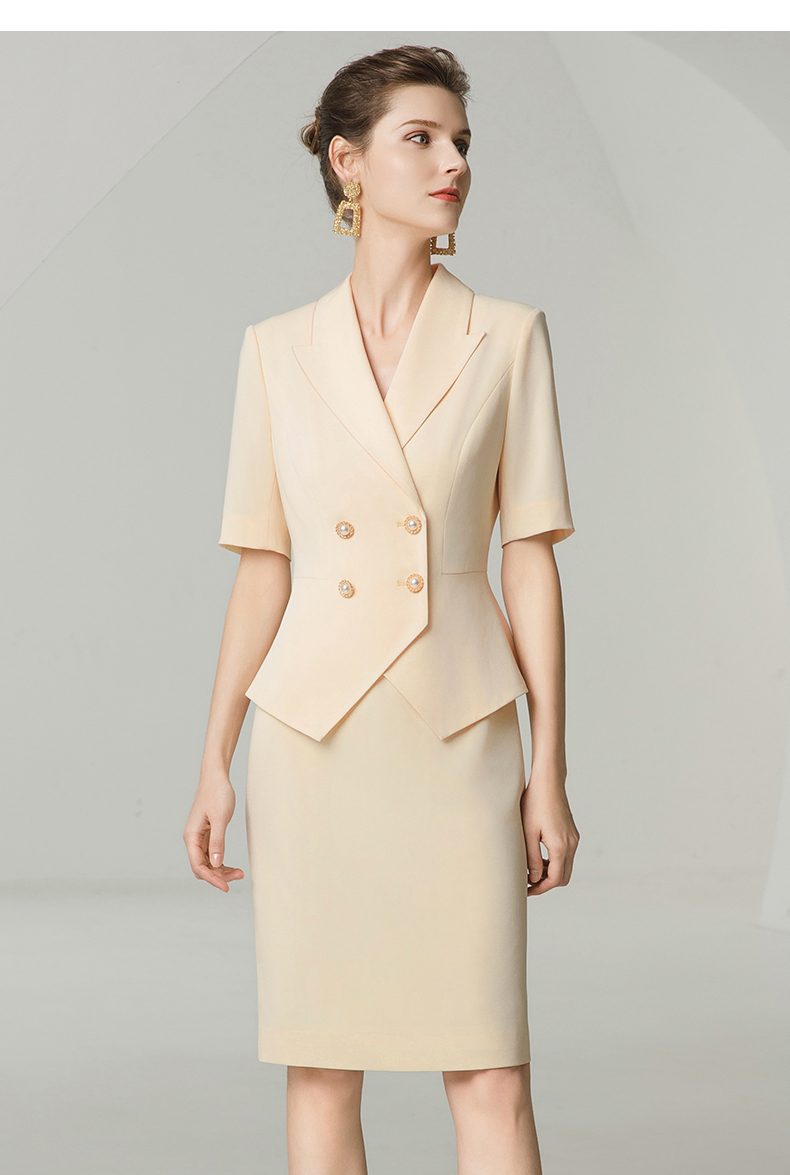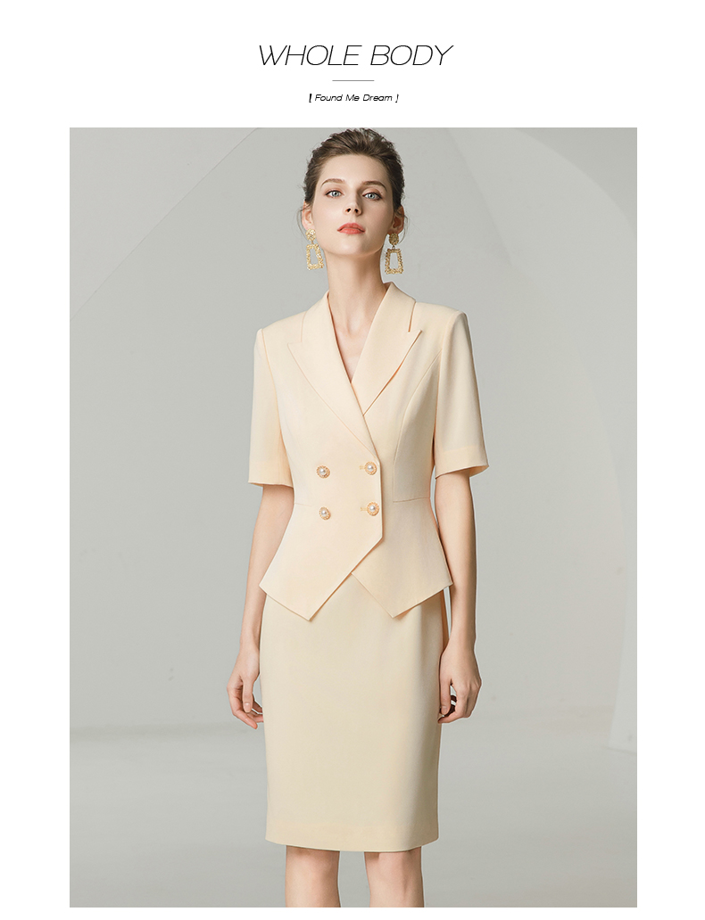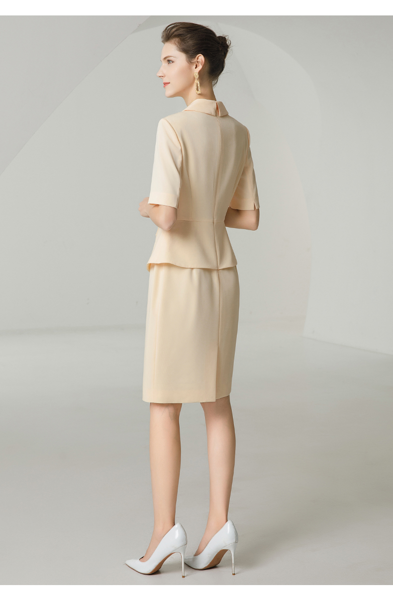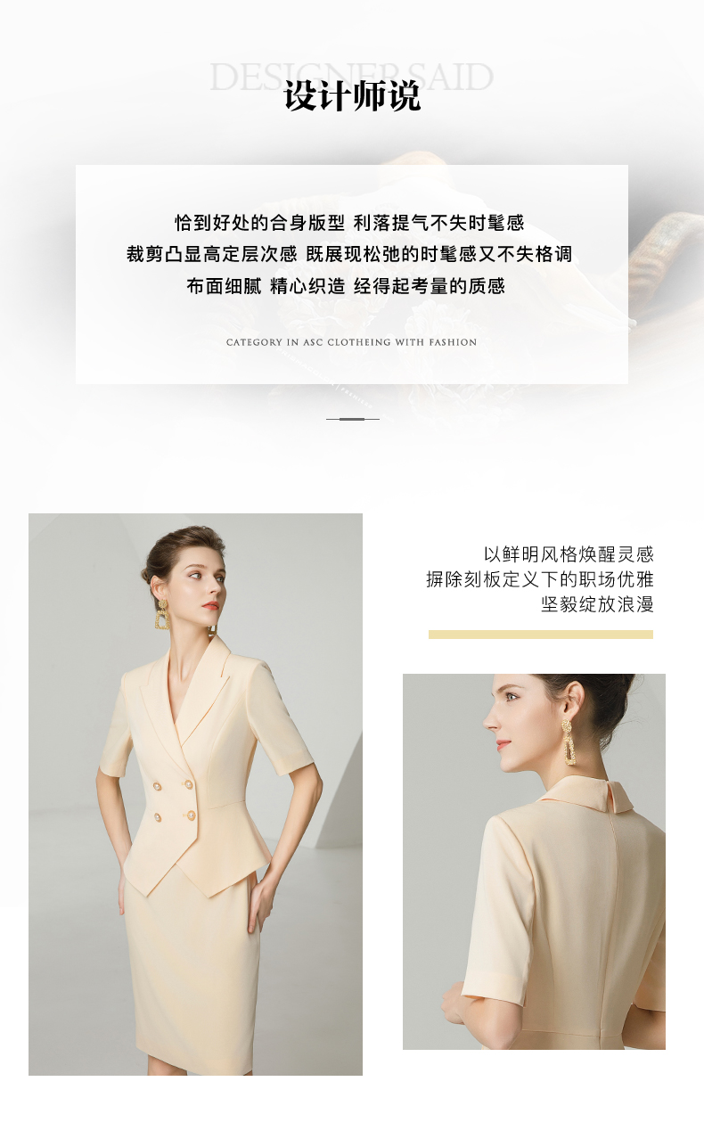 IWY/杏黄色短袖连衣裙女夏季高级感新款裙子职场前台职业OL裙子242027Q1
