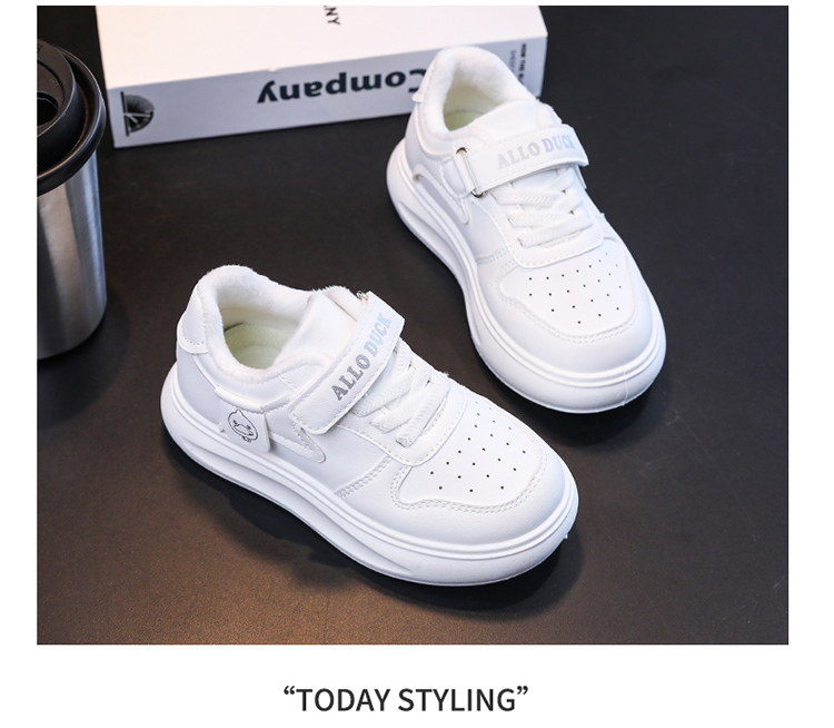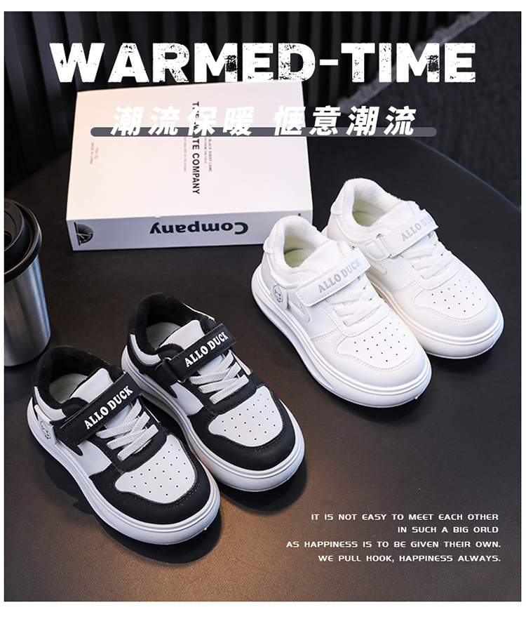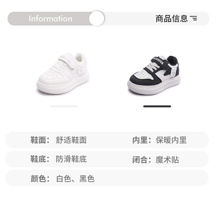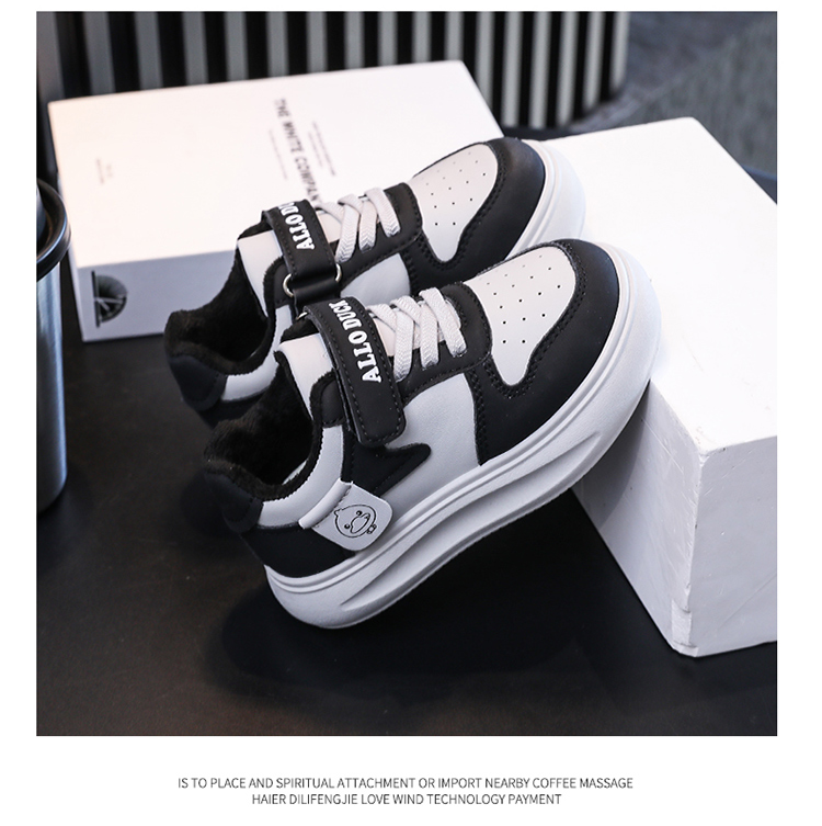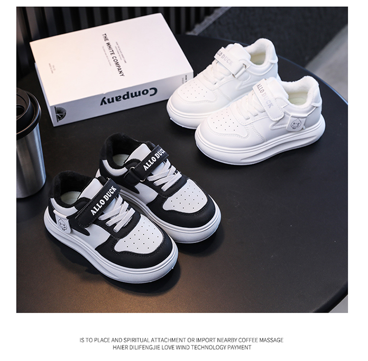 小黄鸭新款秋冬季运动鞋儿童皮面防水男女童加绒保暖中小童跑步鞋潮22-39