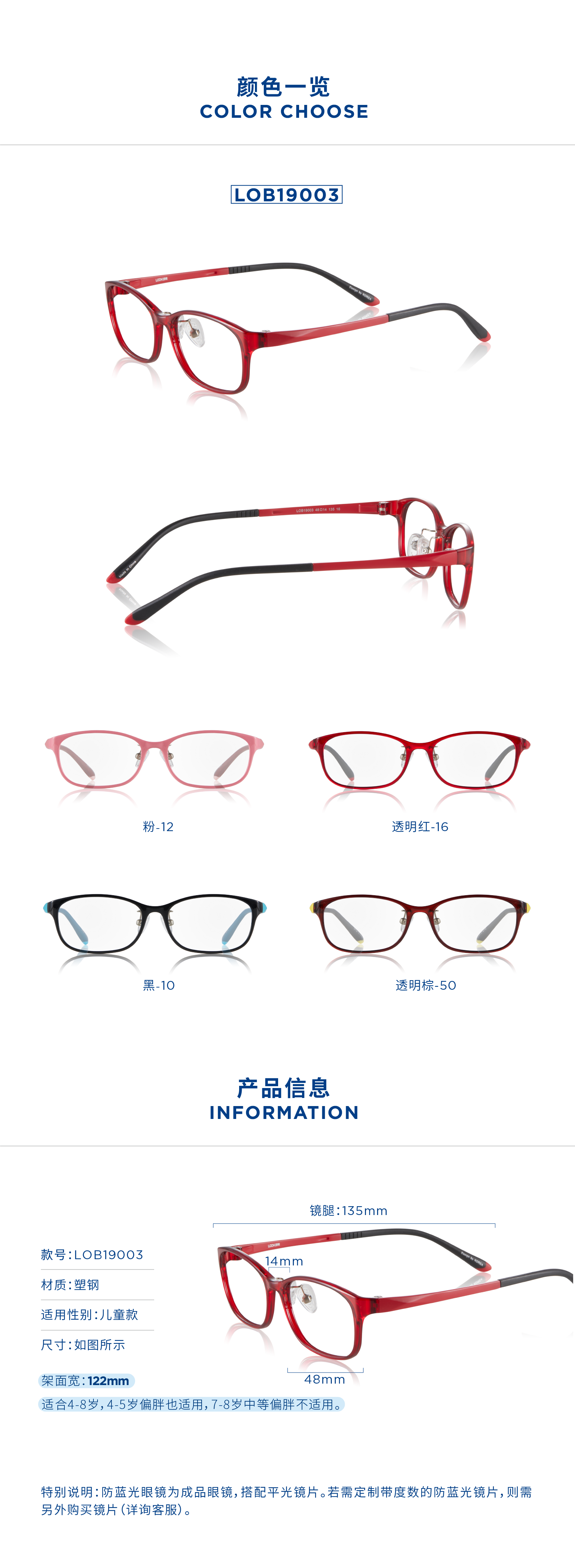 儿童防蓝光眼镜20%阻隔蓝光LOB19003