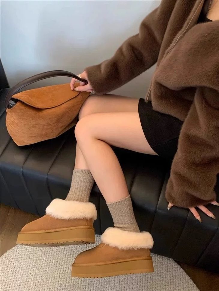 🥯栗色 行走的小火炉!毛绒绒羊毛加厚雪地靴!好暖! 不怕冻jiojio了 毛毛厚实真的太暖和了!! 不仅保暖还百搭家居外穿遛弯都没问题,尊滴太心动了 经典款款式很耐看,不会轻易过时~ 想买雪地靴的宝宝们赶紧看看啦