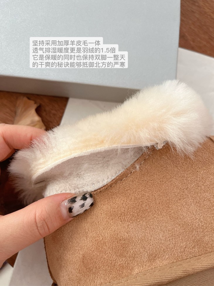 坚持采用加厚羊皮毛一体 透气排湿暖度更是羽绒的1.5倍 它是保暖的同时也保持双脚一整天的干爽的秘诀 能够抵御北方的严寒 很暖很软很贴心