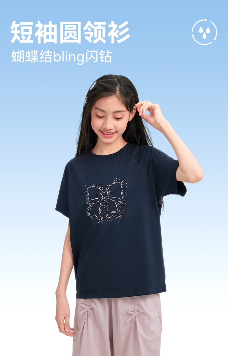 水孩儿童装速干T恤女大童2026夏季新品透气短袖圆领衫凉感上衣
