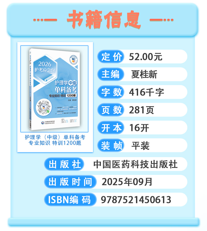 书名:2026护理学(中级)单科备考 专业知识 特训1200题 护考应急包