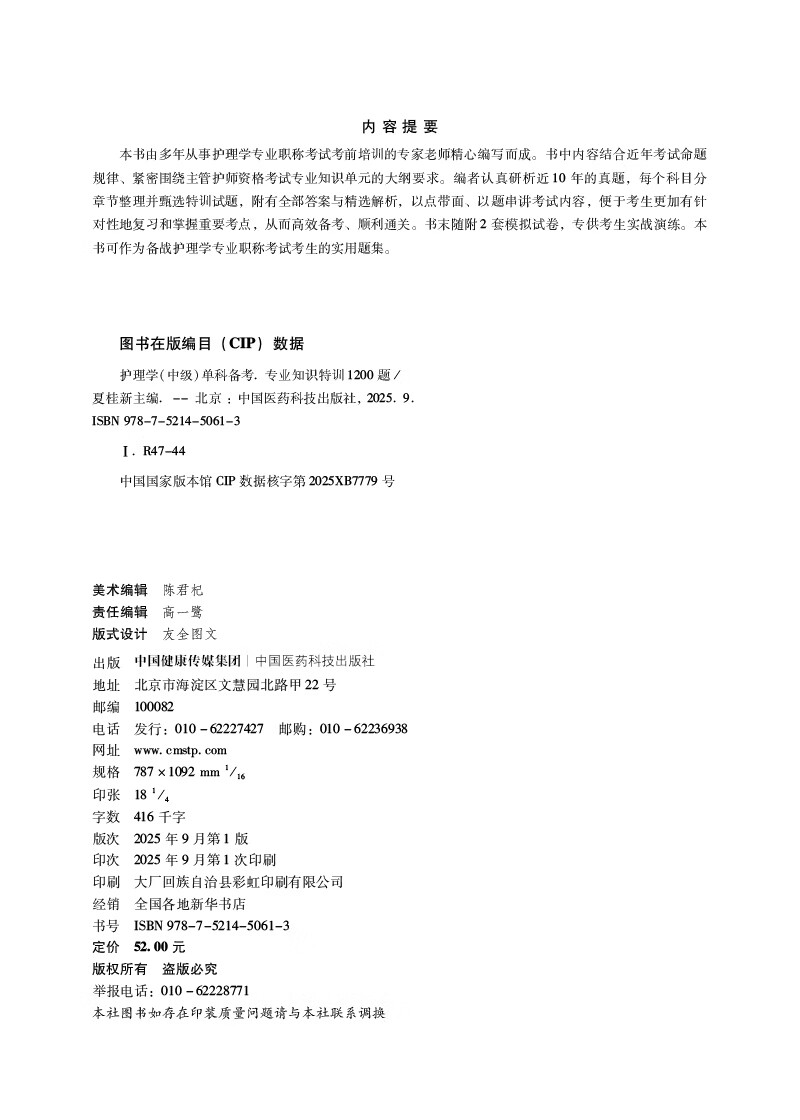 2026护理学(中级)单科备考 专业知识 特训1200题 护考应急包 夏桂新 2026年主管护师护理学中级单科一次过 中国医药科技出版社