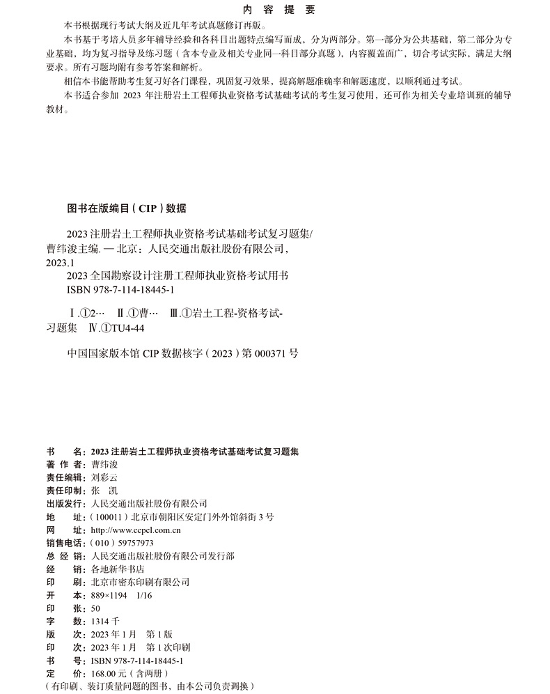 书名:2023注册岩土工程师执业资格考试基础考试复习题集