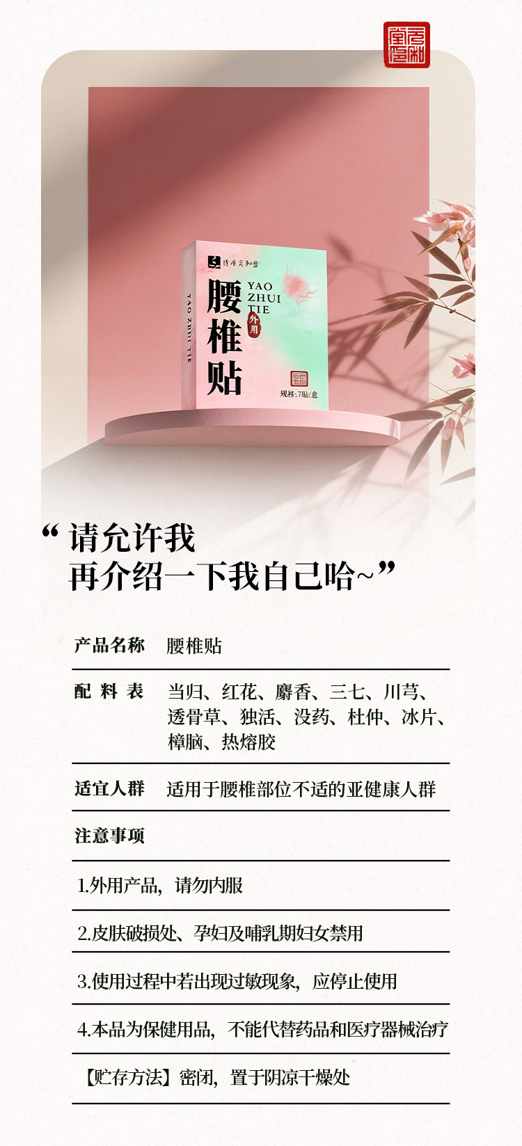 「腰椎贴」7贴/盒 | 一贴两膏当归红花麝香三七川芎透骨草中草药膏发热贴 | 阳虚腰肌养生 | 元和好物迷罗亲研