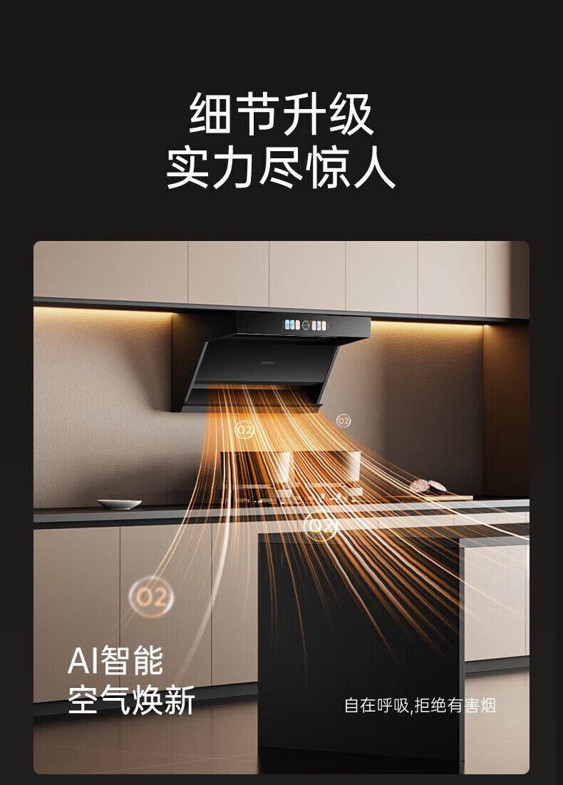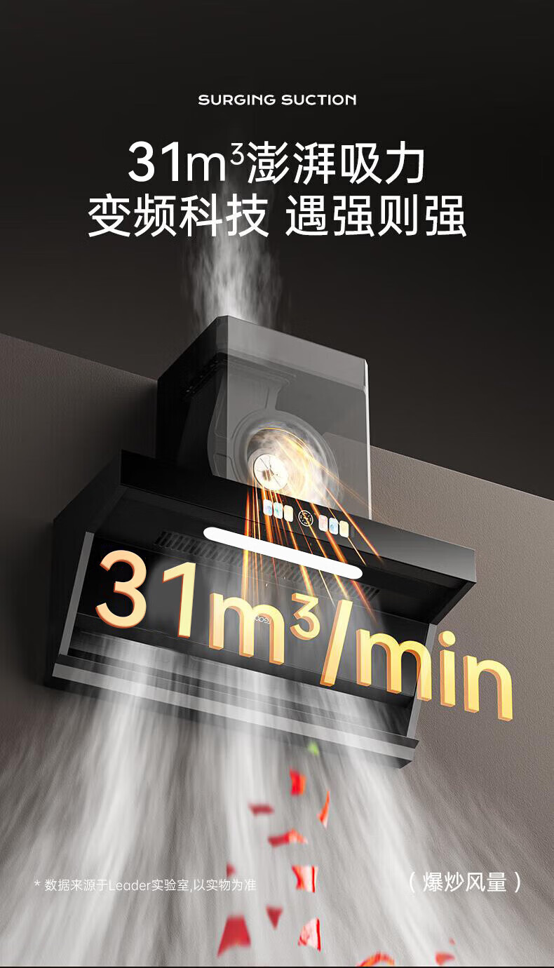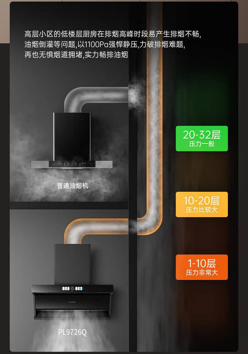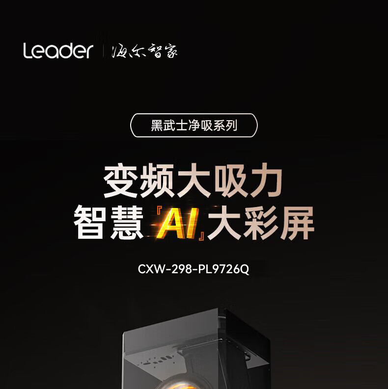 海尔(Haier)油烟机家用31立方变频大吸力7字形顶侧双吸油烟机PL9726Q挥手智控高频自清洗1100Pa风压油烟机套装 31立方智能AI变频【单油烟机】