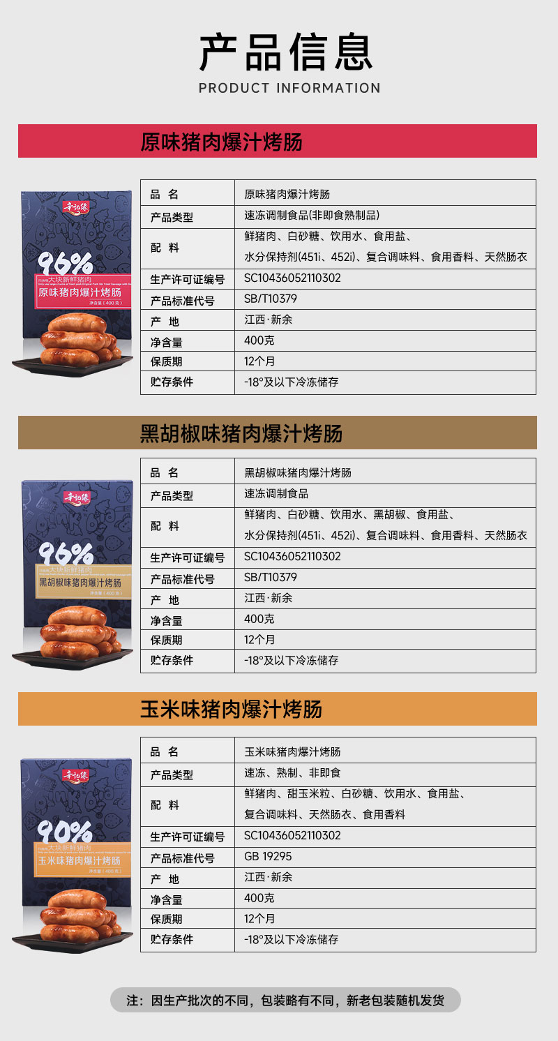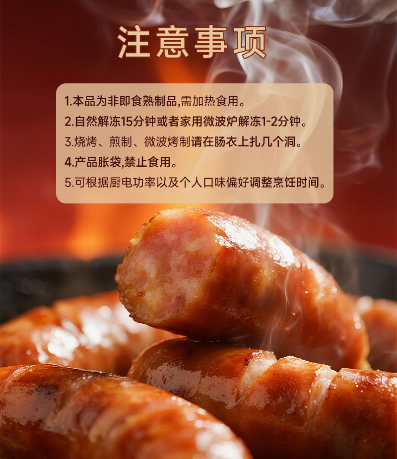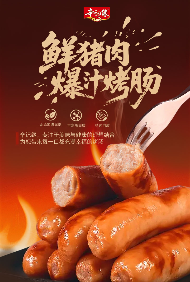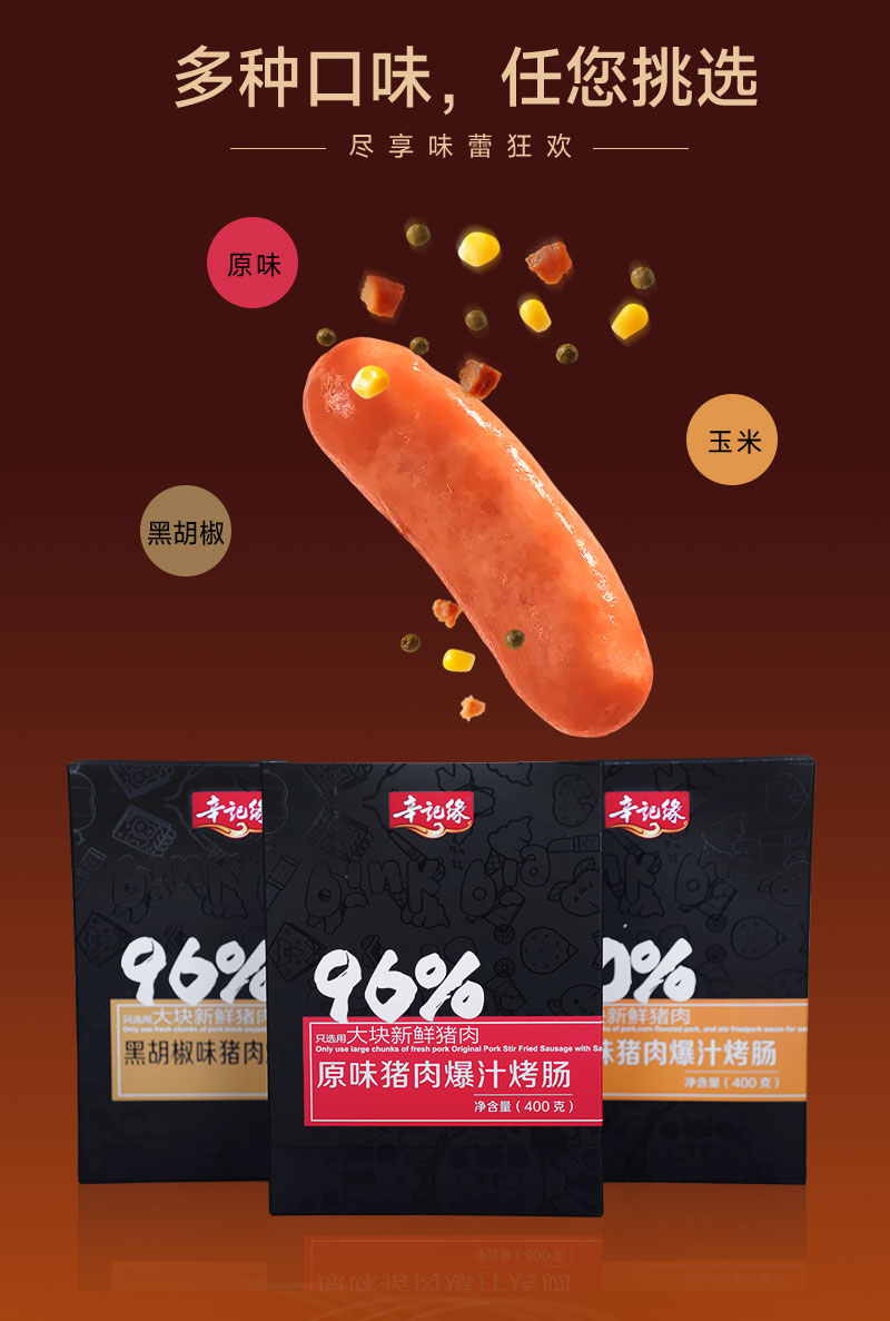 辛记缘纯鲜肉烤肠一口爆汁400g*3盒